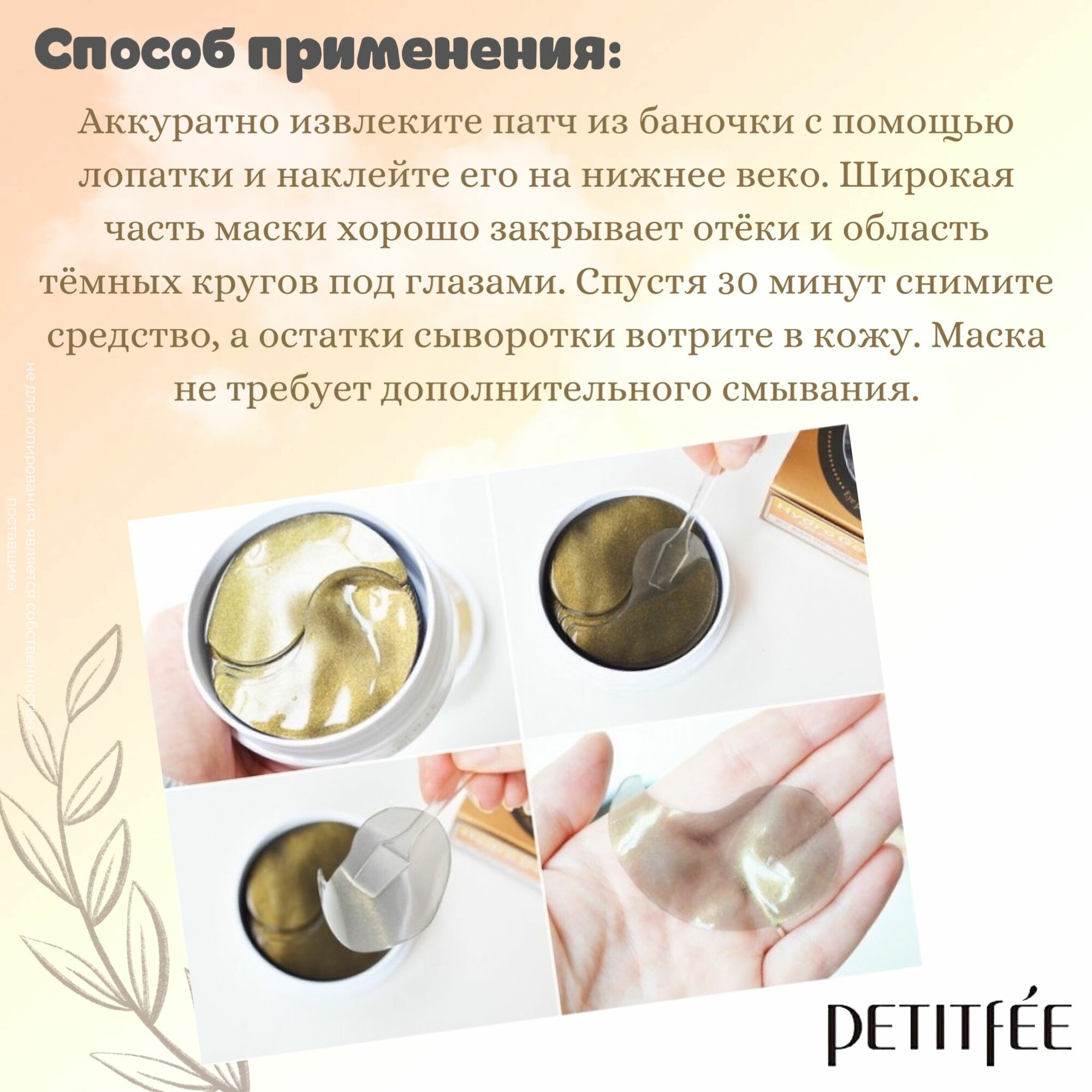 | Дополнительная информация | для усиления противоотечного эффекта храните упаковку с патчами в холодильнике |