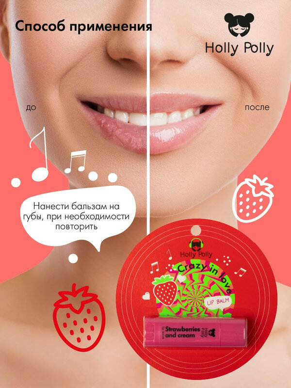 Holly Polly Music Collection Crazy in Love - Холли Полли Бальзам для губ Клубника со сливками, 4,8 гр - интересное: