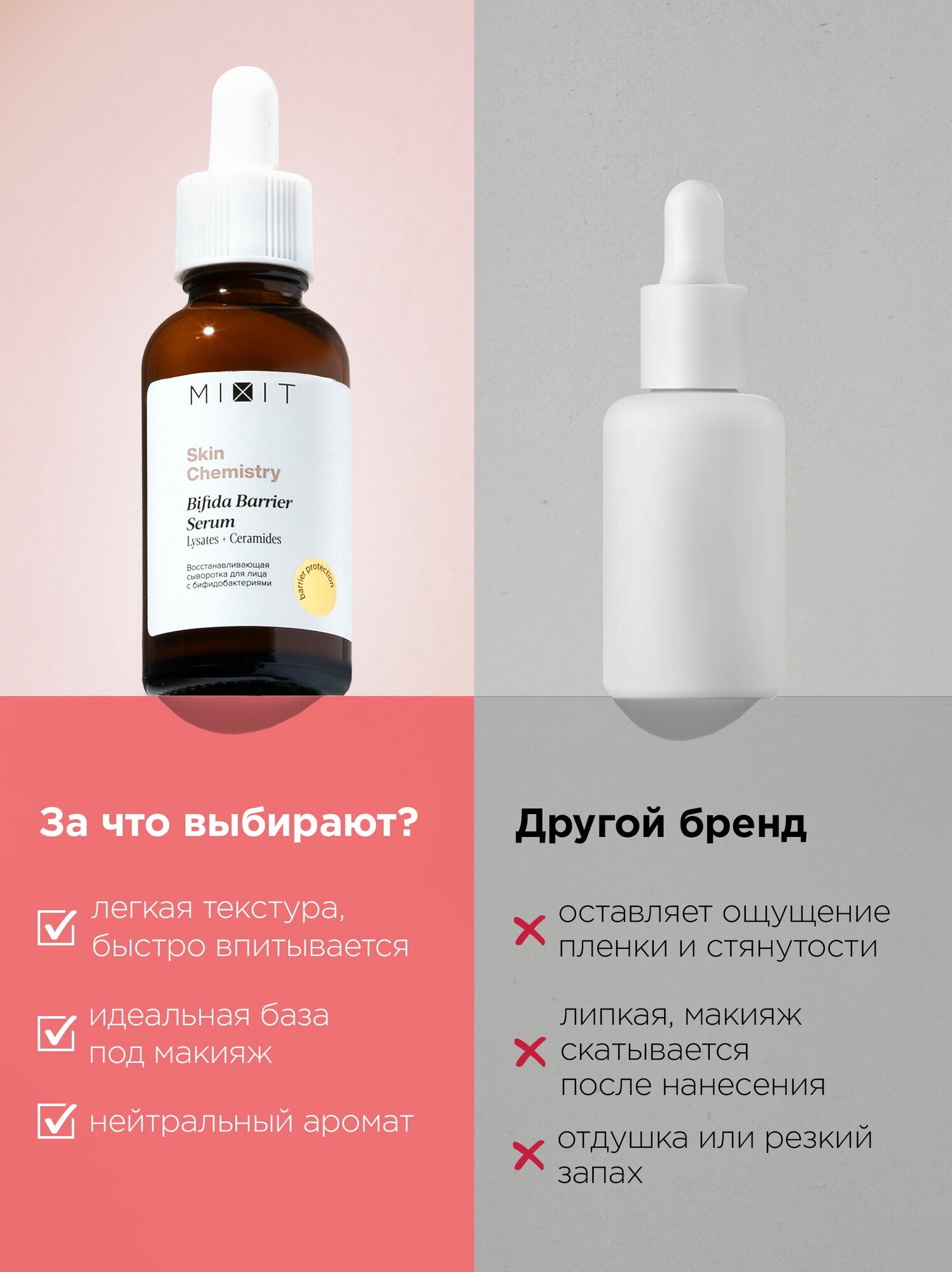 Купить MIXIT Сыворотка для лица восстанавливающая против воспалений с бифидобактериями Skin Chemistry, 30 мл