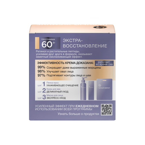 Купить Черный жемчуг Крем для лица антивозрастной с ретинолом ночной Черный Жемчуг Ретинол+ Экстра-восстановление 60+ лет, сокращает морщины 50 мл, 50 мл