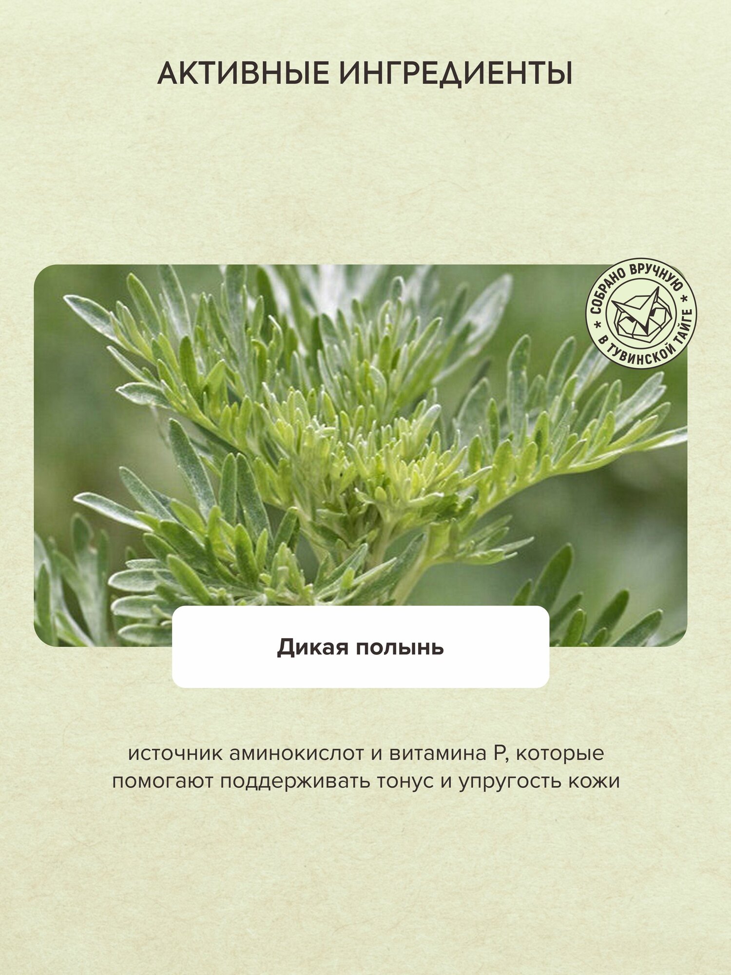 | Масла и экстракты | экстракт полыни / экстракт родиолы розовой / экстракт ромашки / экстракт тысячелистника / экстракт шалфея |