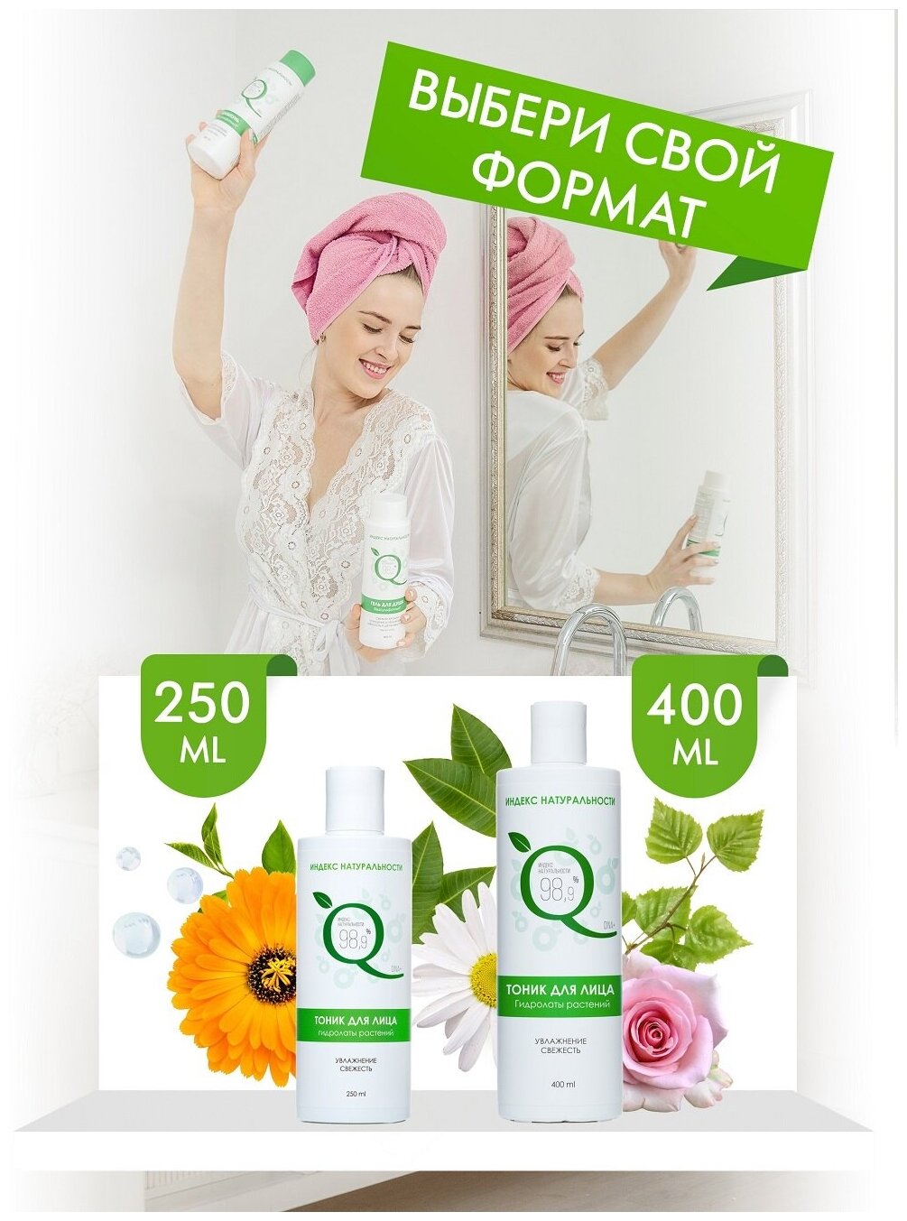 Купить Тоник ИНДЕКС НАТУРАЛЬНОСТИ для лица увлажняющий и освежающий 400 мл
