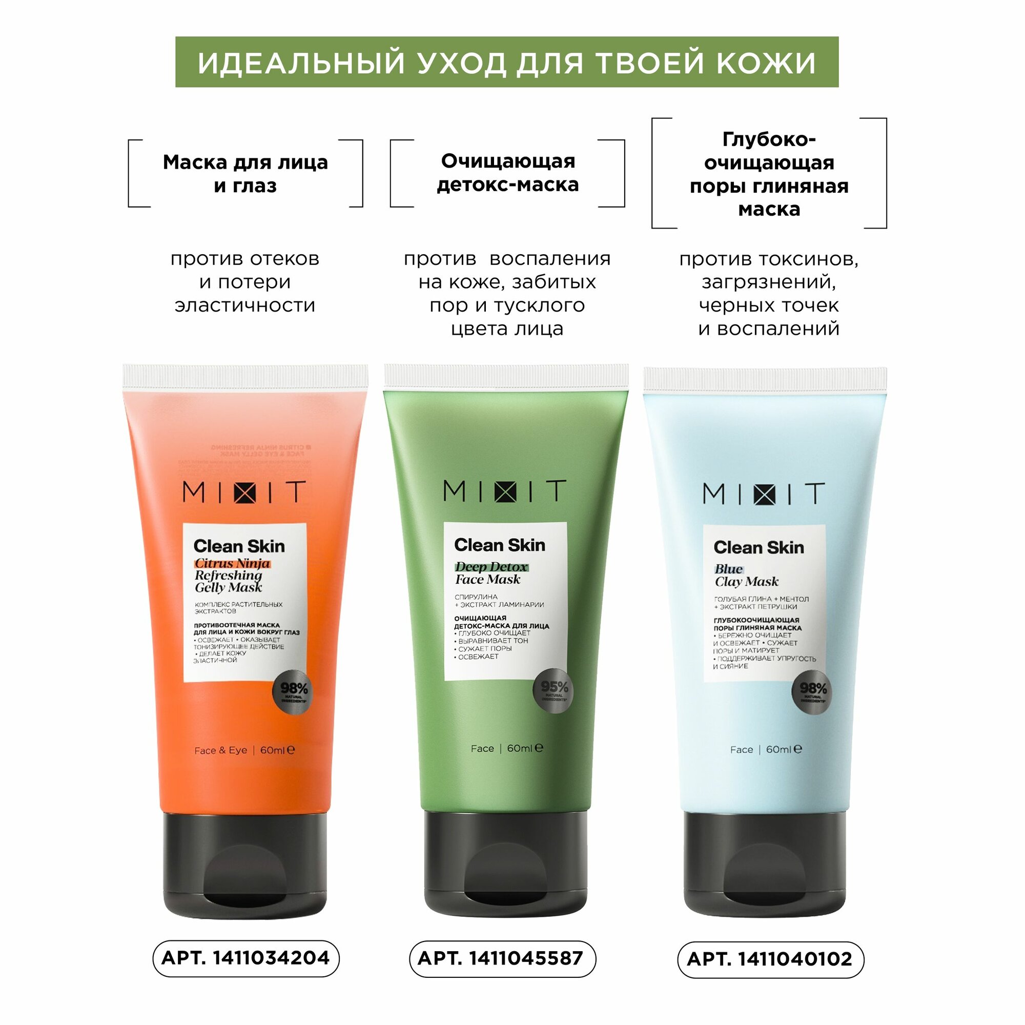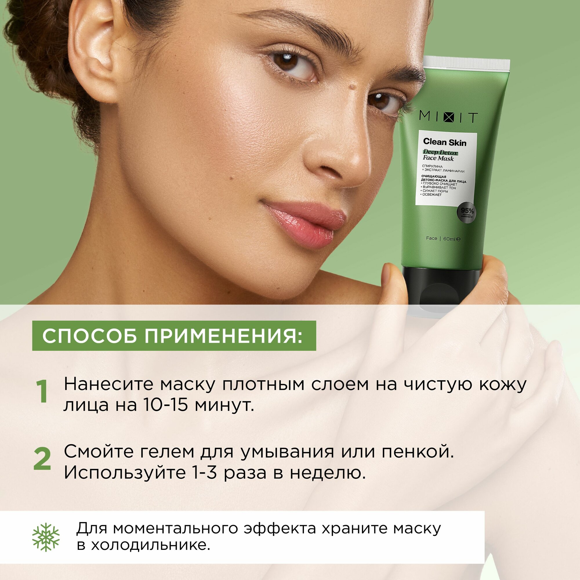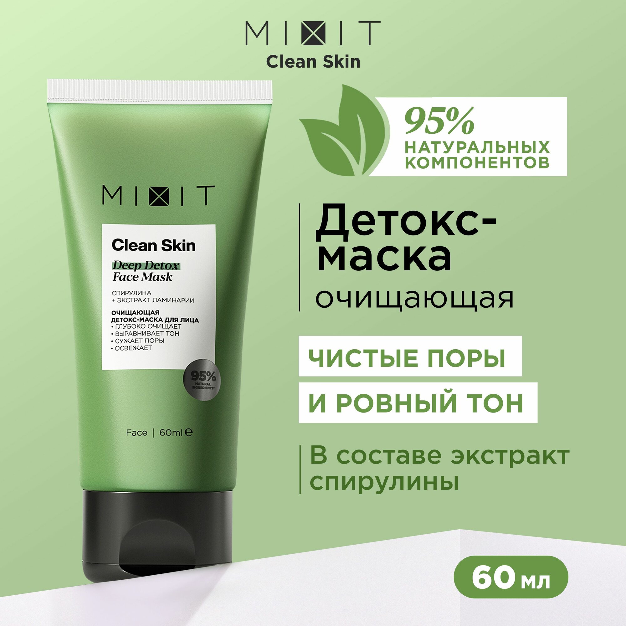 MIXIT Очищающая детокс-маска Clean Skin Deep Detox Face sos Mask with Spirulina для лица от прыщей, 60 мл интересное: