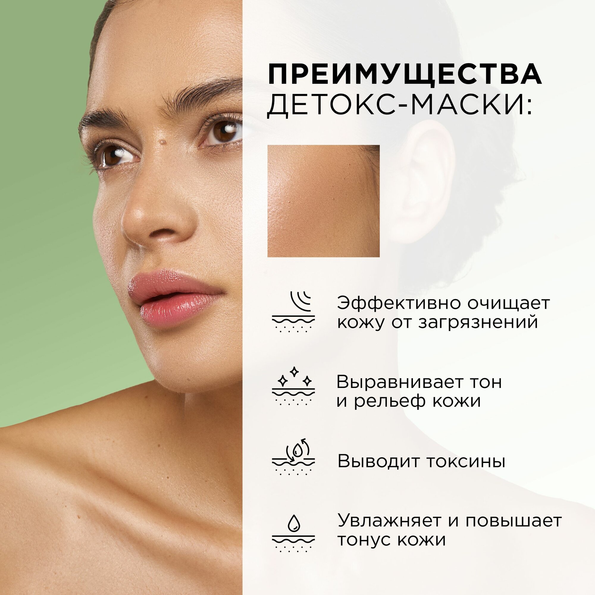 | Эффект | матирование / от черных точек / очищение / питание / повышение упругости / против акне / сияние кожи / тонизирование / увлажнение / улучшение цвета |