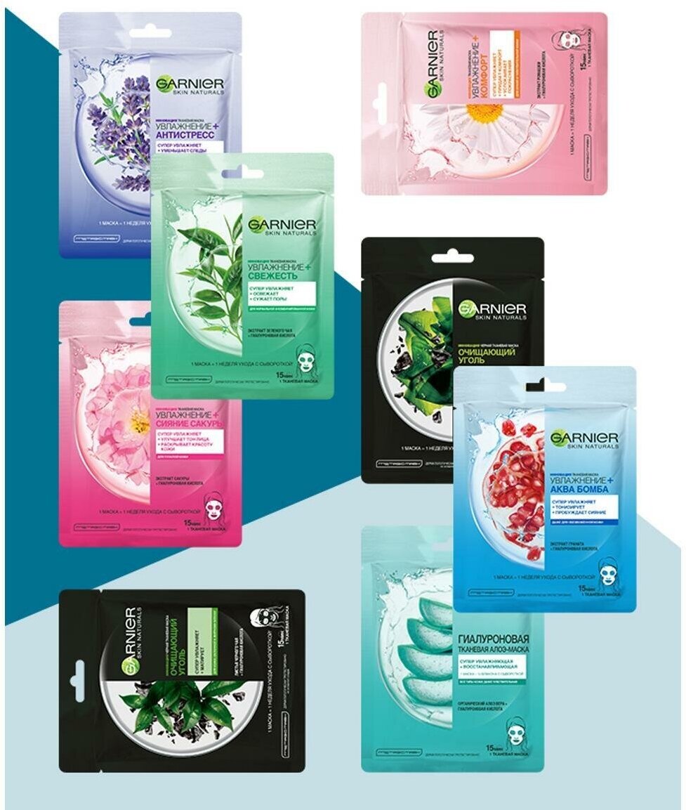 GARNIER тканевая маска Увлажнение + Аква Бомба, 28 г, 1 мл интересное: