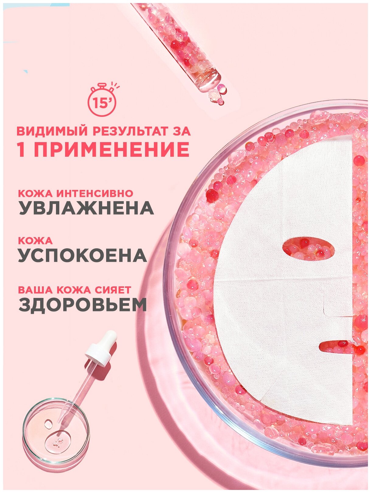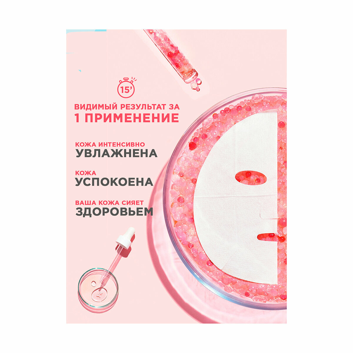 | Способ применения | разверните маску. Аккуратно нанесите на чистую кожу лица. Оставьте на 15 минут, а затем снимите маску. Вмассируйте излишки сыворотки, нанесите ее на шею или удалите ватным диском |