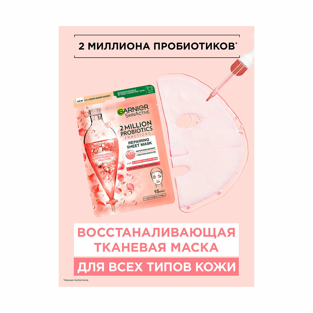 GARNIER тканевая маска восстанавливающая с пробиотиками, 22 г, 22 мл интересное:
