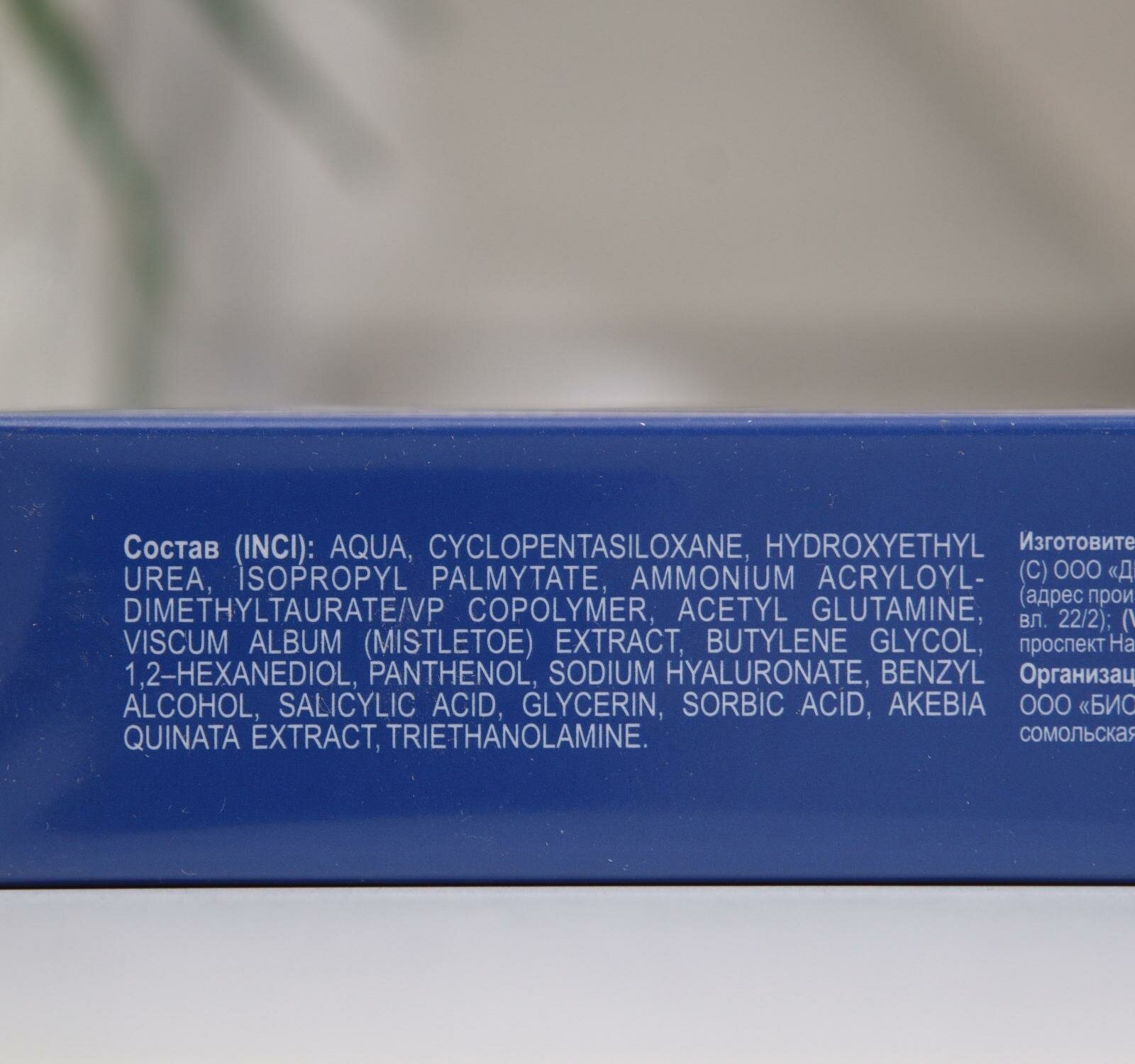 | Состав | aqua, cyclopentasiloxane, hydroxyethyl urea, isopropyl palmytate, ammonium acryloyl- dimethyltaurate/vp copolymer, acetyl glutamine, viscum album (mistletoe) extract, butylene glycol, 1,2–hexanediol, panthenol, sodium hyaluronate, benzyl alcohol, salicylic acid, glycerin, sorbic acid, akebia quinata extract, triethanolamine |