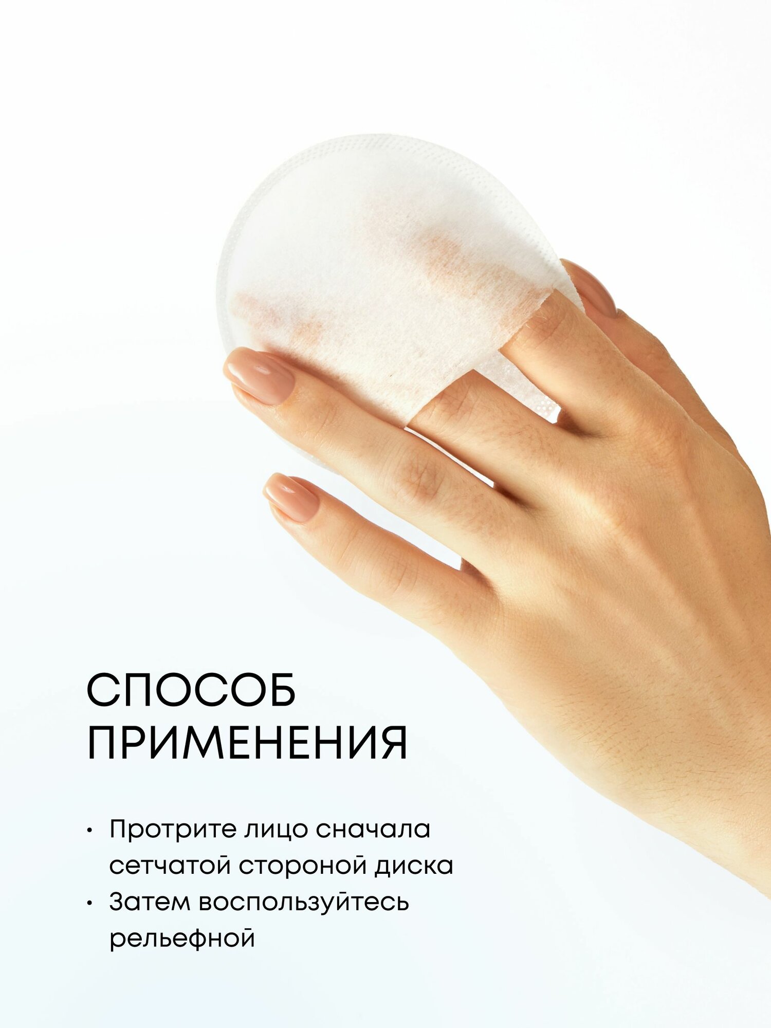 | Способ применения | предварительно очищенное лицо протрите диском, избегая область вокруг глаз. Переверните диск и протрите лицо ещё раз |