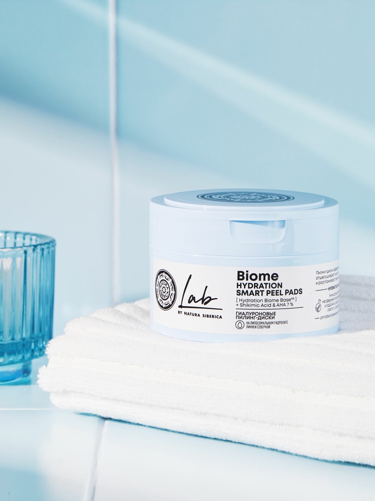 Купить Natura Siberica Lab Biome Гиалуроновые пилинг пэды для лица с шикимовой, молочной, гликолевой AHA и салициловой BHA кислотами, увлажняющие очищающие диски 20 шт