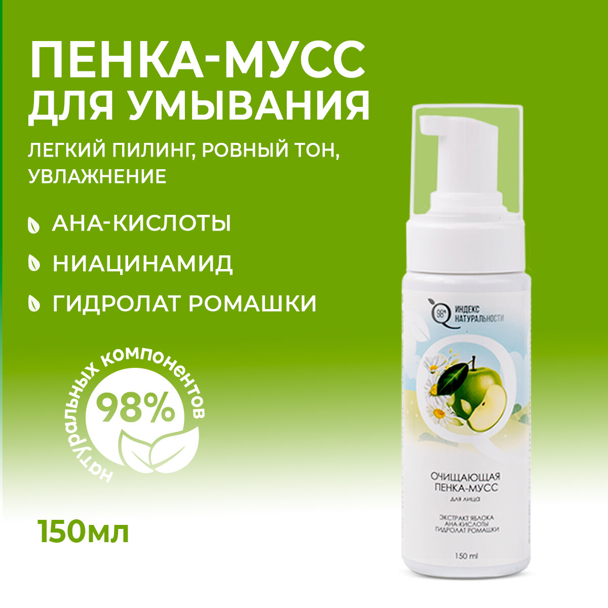 Пенка для умывания ИНДЕКС НАТУРАЛЬНОСТИ легкий пилинг 150 мл интересное: