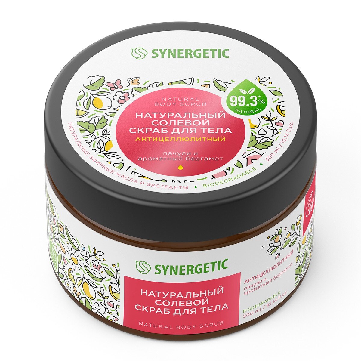 Скраб для тела SYNERGETIC антицеллюлитный "Пачули и ароматный бергамот", 300 мл