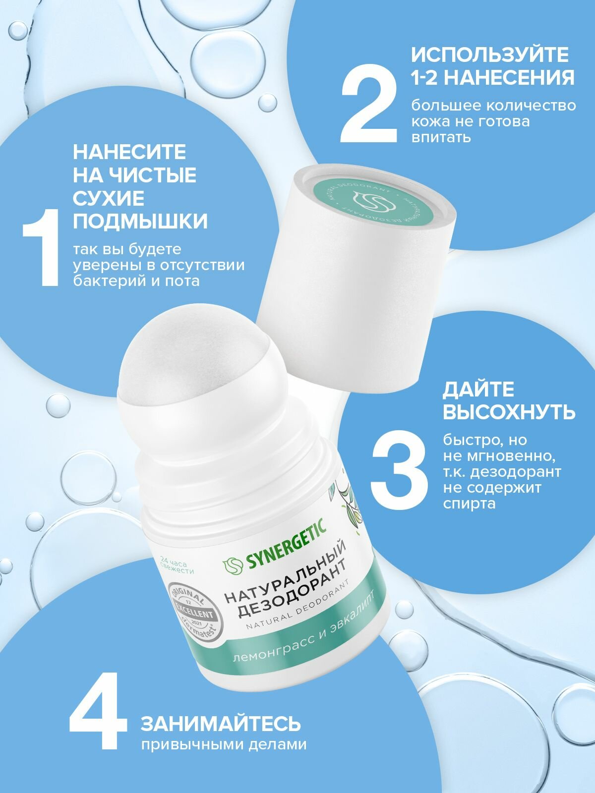 Натуральный дезодорант SYNERGETIC "лемонграсс - эвкалипт" , гипоаллергенный, шариковый , 50мл. интересное: