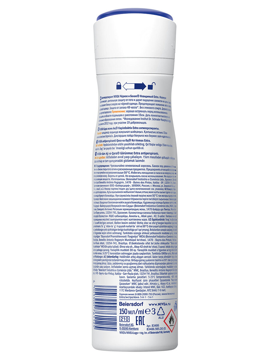 Купить Антиперспирант спрей NIVEA Черное и Белое. Невидимый Extra 150мл