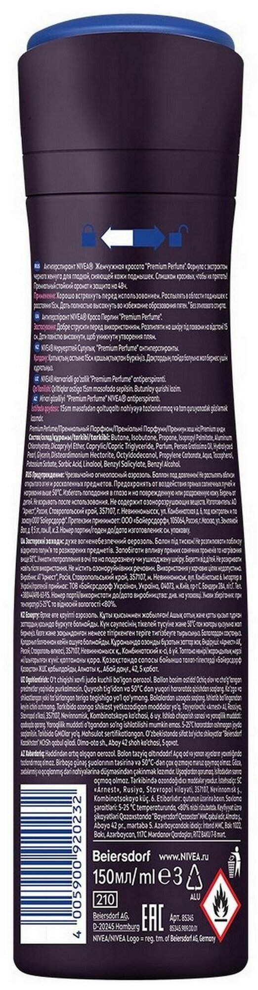 Купить NIVEA Антиперспирант Жемчужная красота Premium Perfume, спрей, аэрозоль, 150 мл, 150 г, 1 шт.