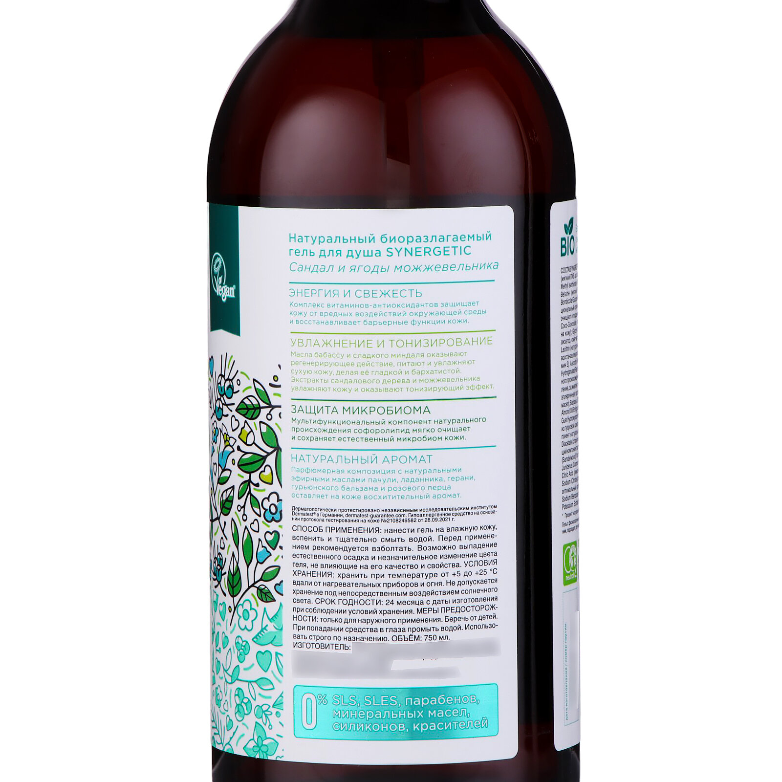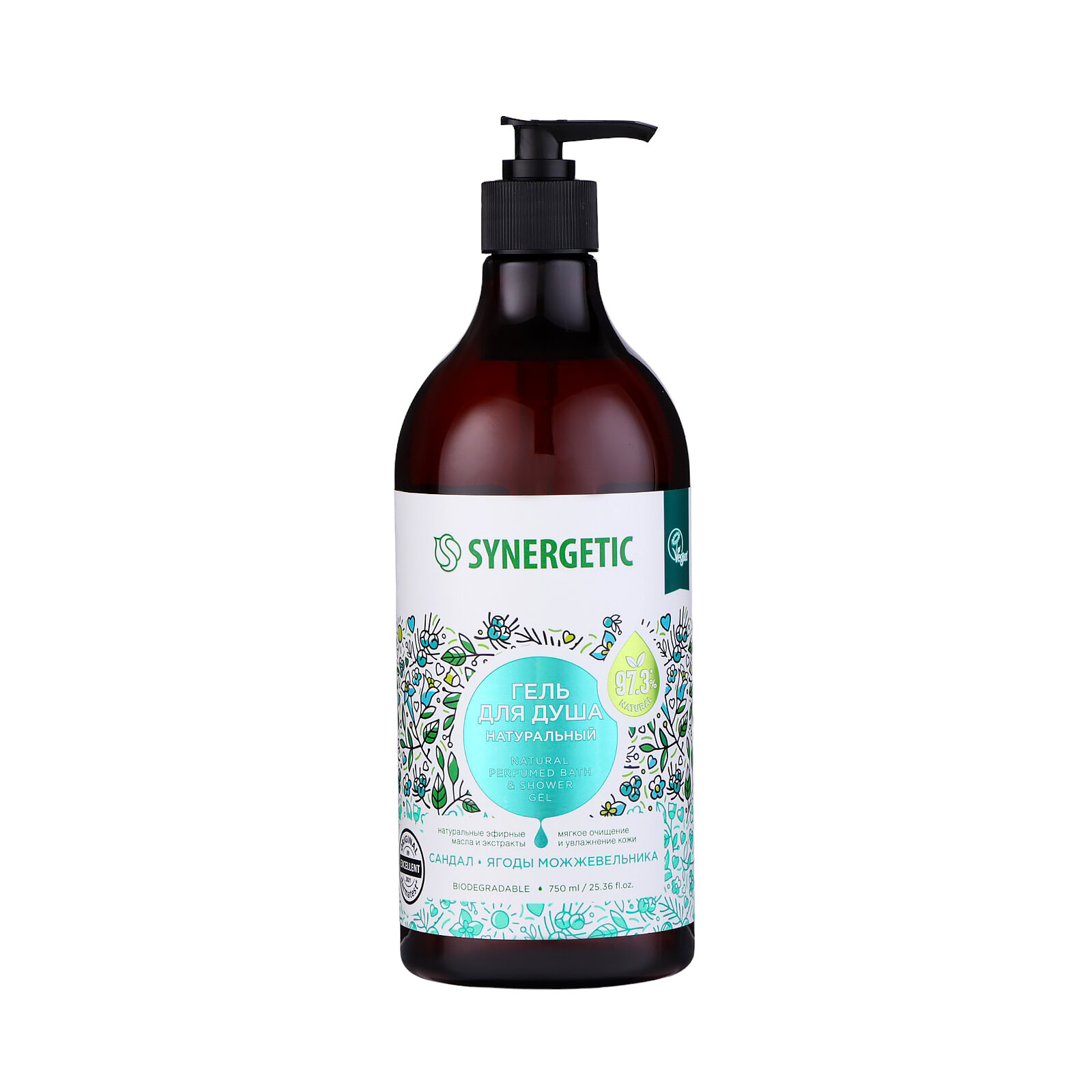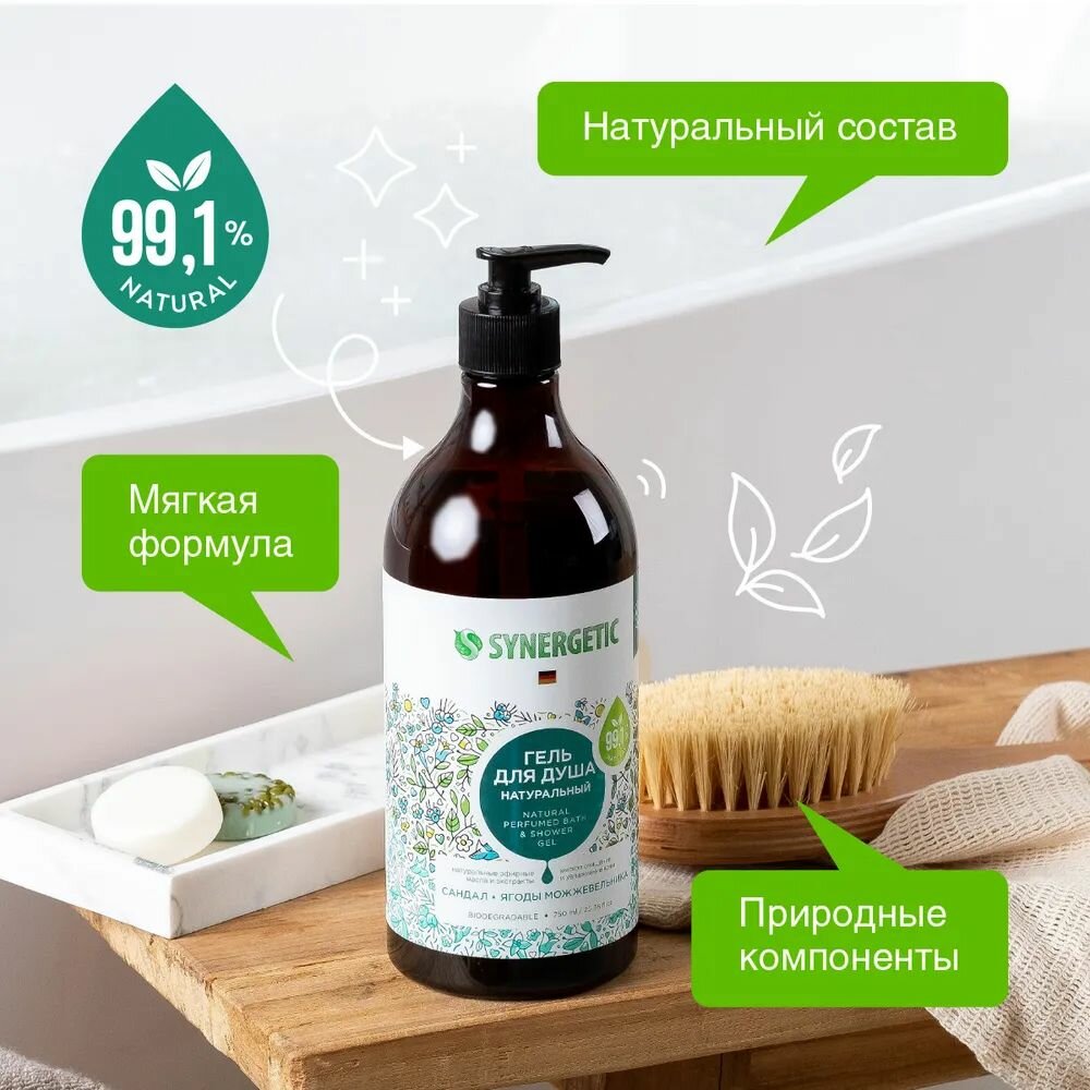 Купить Гель для душа Synergetic "Сандал и ягоды можжевельника" 750 мл