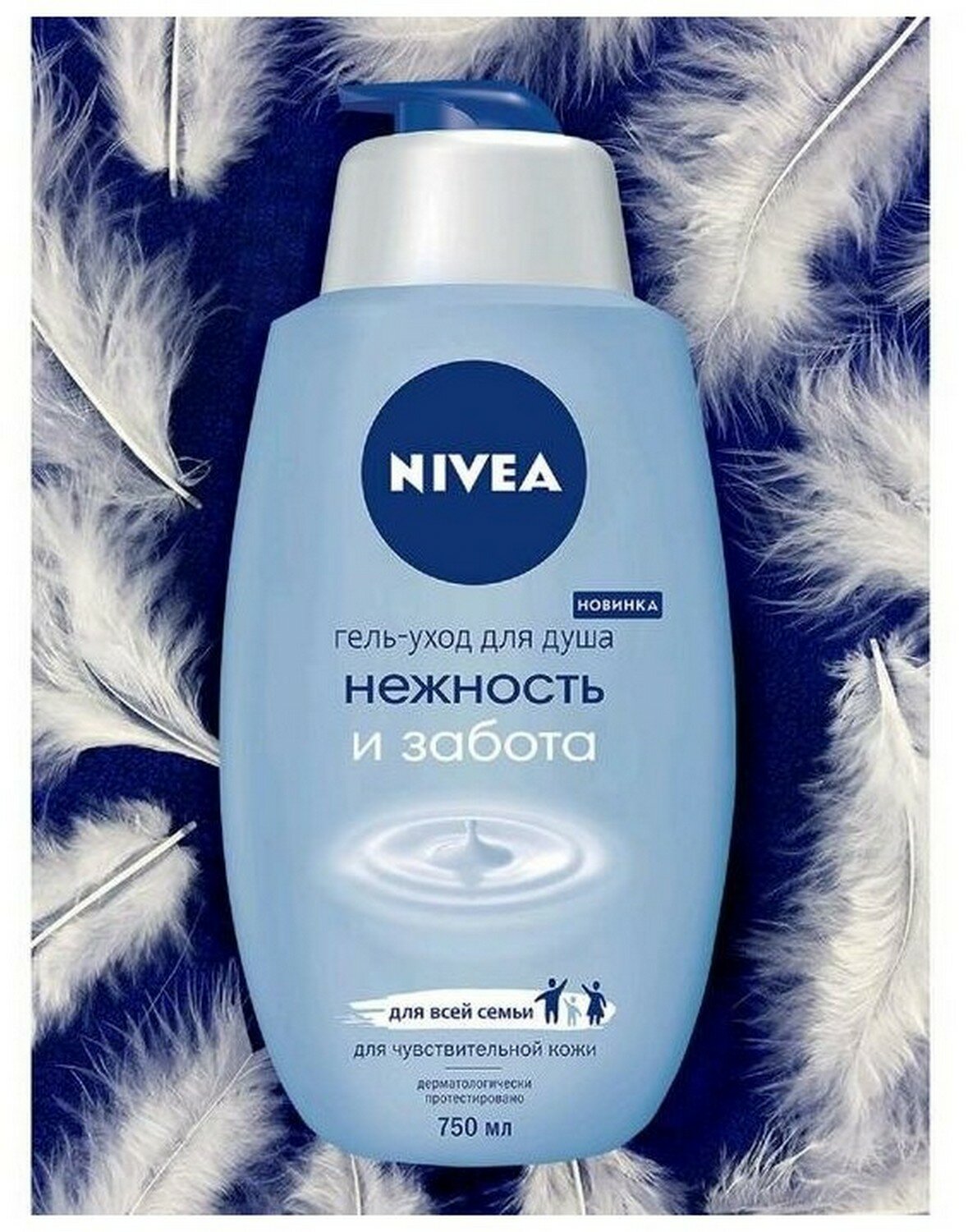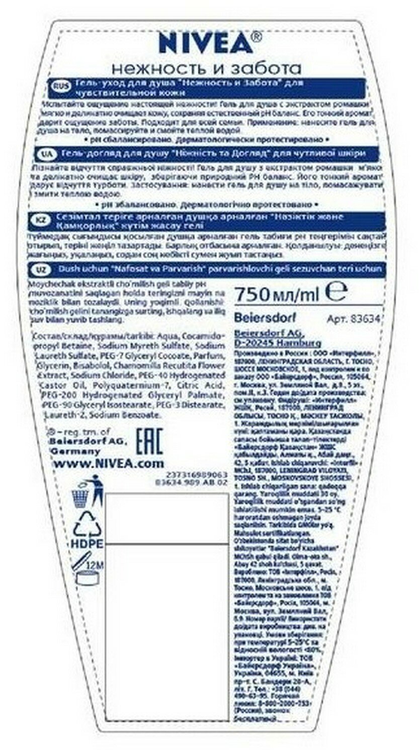 Гель-уход для душа Nivea Нежность и забота, для чувствительной кожи, 750 мл