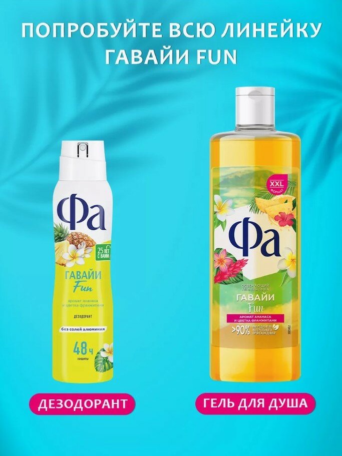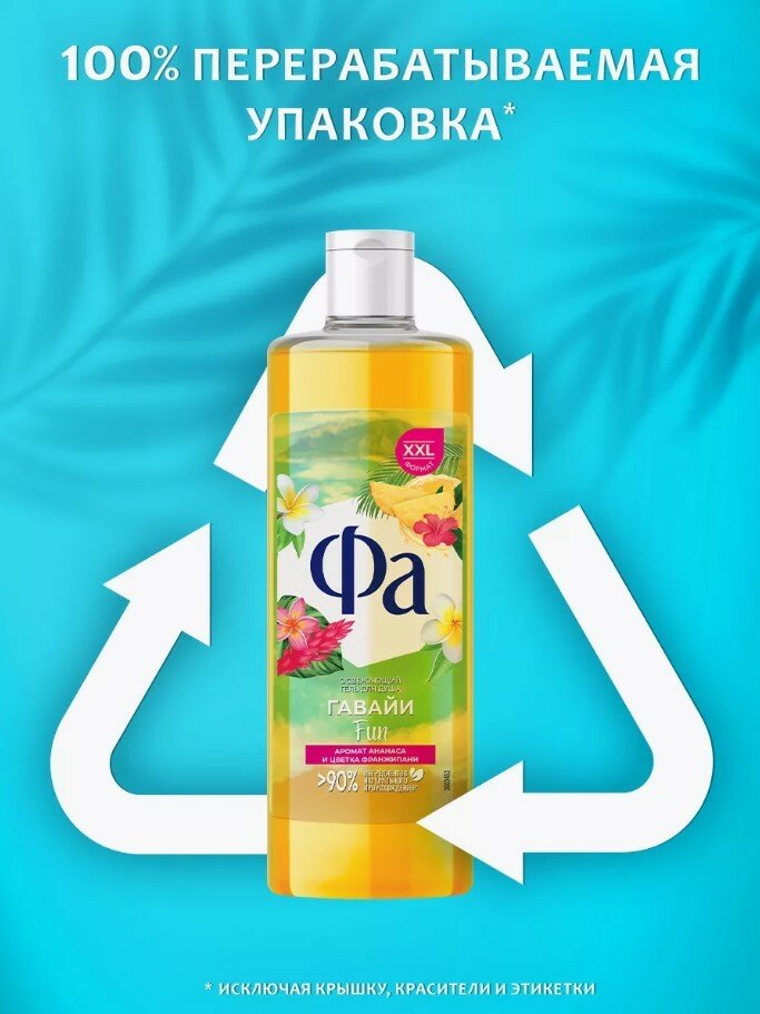 Ниже Вы можете прочитать отзывы на Гель для душа Фа Ритмы Острова Гавайи Fun, освежающий, ананас и цветок франжипани, 450 мл, ознакомится с подробными характеристиками, посмотреть интересные обзоры и фотографии на Гель для душа Фа Ритмы Острова Гавайи Fun, освежающий, ананас и цветок франжипани, 450 мл.