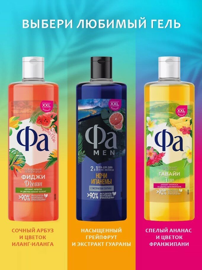 Гель для душа Fa "Men", Энергия Полинезии, Свежесть Грозы, 750 мл