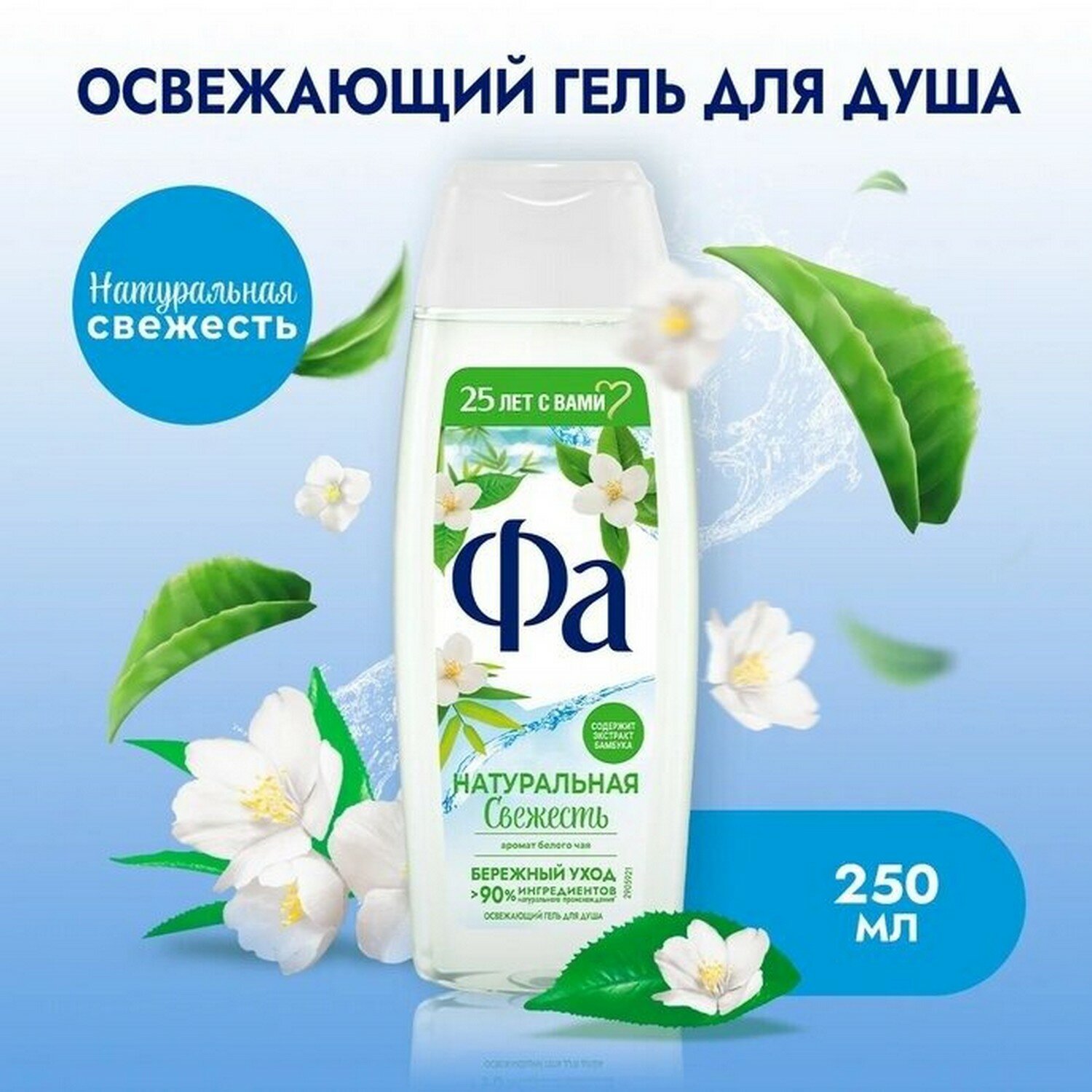 Фа Гель для душа Натуральная свежесть Белый чай и бамбук травяной, 250 мл - 1 шт
