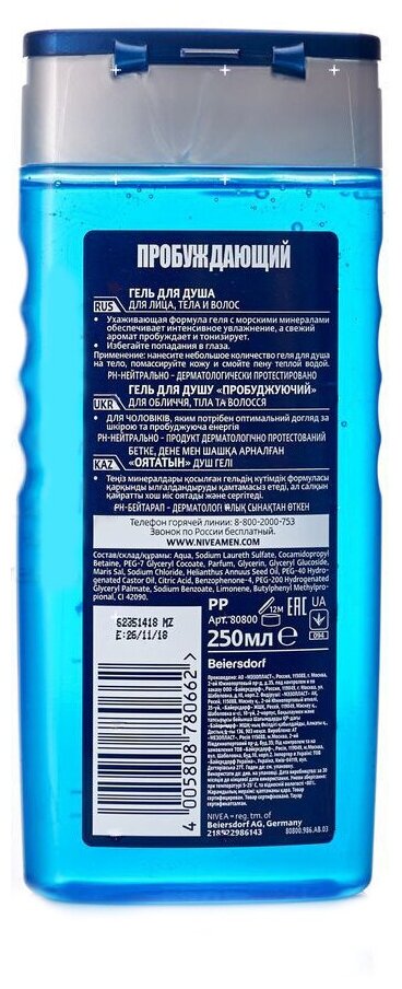 Ниже Вы можете прочитать отзывы на Гель для душа мужской NIVEA MEN 2в1 "Пробуждающий" для тела и волос с морскими минераламиарктическая свежесть, 250 мл, ознакомится с подробными характеристиками, посмотреть интересные обзоры и фотографии на Гель для душа мужской NIVEA MEN 2в1 "Пробуждающий" для тела и волос с морскими минераламиарктическая свежесть, 250 мл.