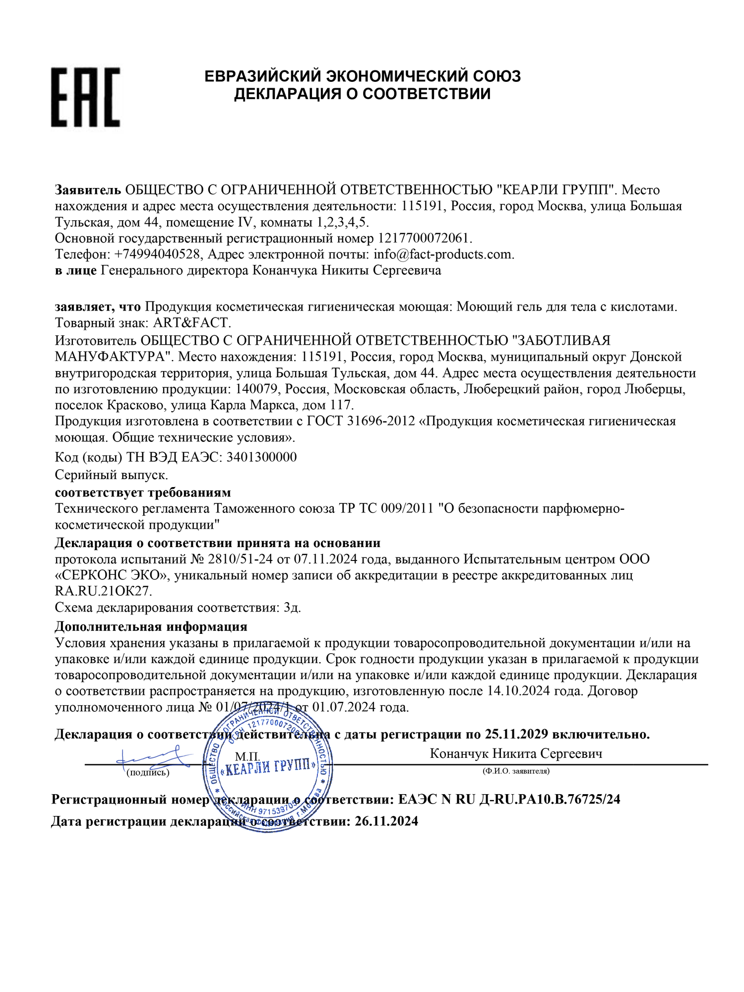 ART&FACT. / Антиакне моющий гель для тела с кислотами 2%, очищение и отшелушивание, 200 мл интересное: