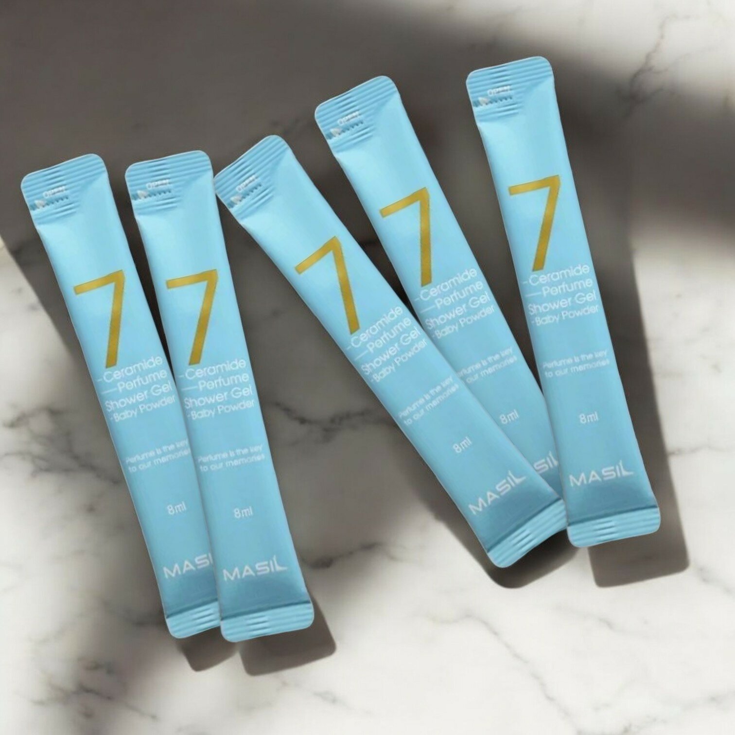 Купить MASIL 7 CERAMIDE PERFUME SHOWER GEL STICK POUCH Парфюмированный гель для душа с ароматом детской присыпки 20шт*8мл