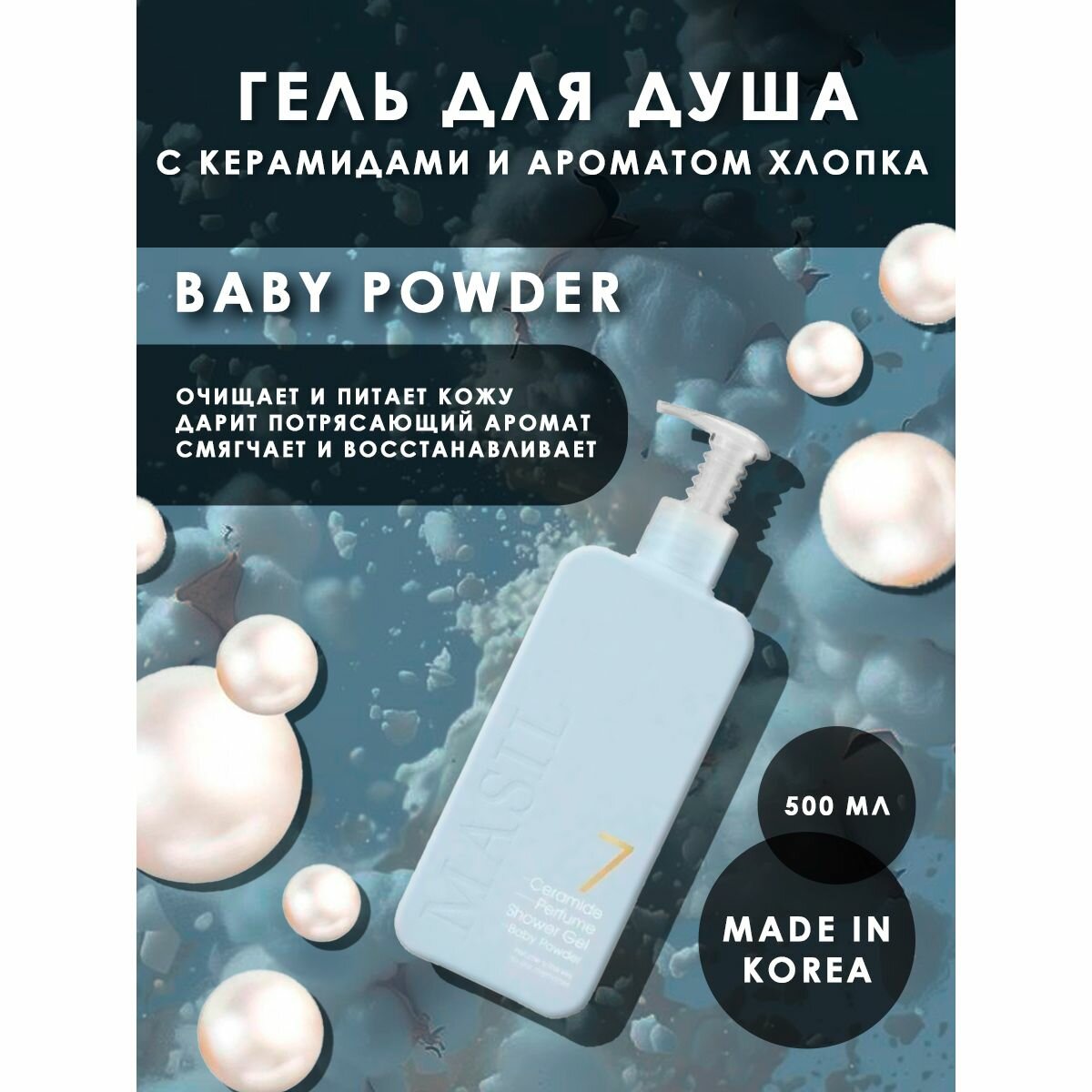 MASIL 7 CERAMIDE PERFUME SHOWER GEL BABY POWDER Парфюмированный гель для душа с керамидами и ароматом детской присыпки 500 мл