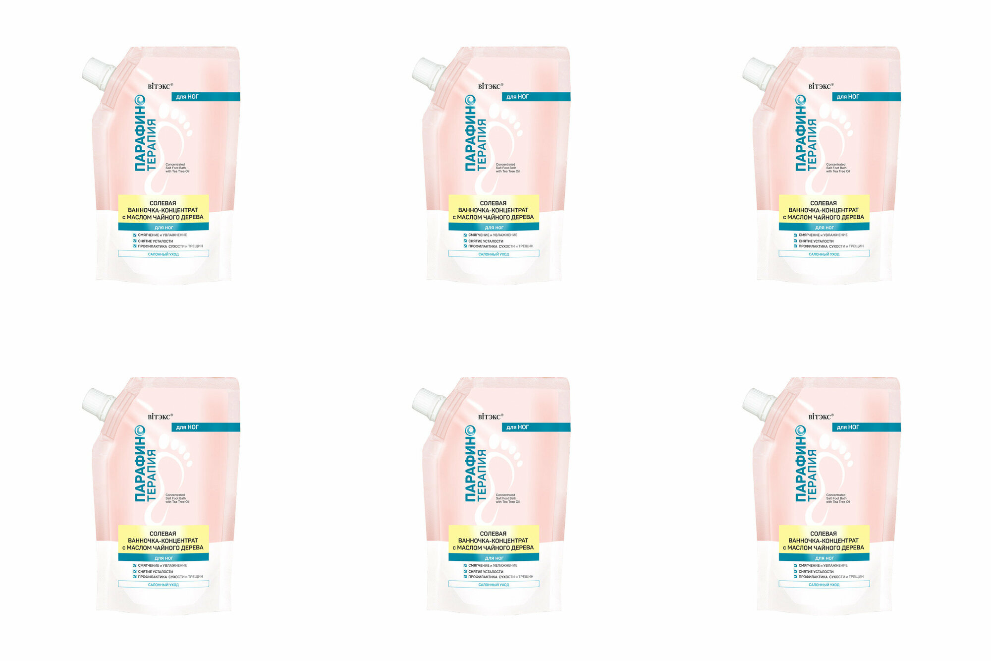 Купить Витэкс Парафинотерапия Ванночка-концентрат для ног Солевая с маслом чайного дерева дой-пак, 170 мл, 6 шт