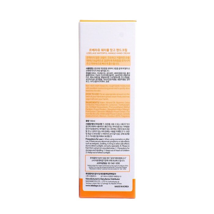 Lebelage Увлажняющий крем для рук с экстрактом манго 100мл Waterful Mango Hand Cream