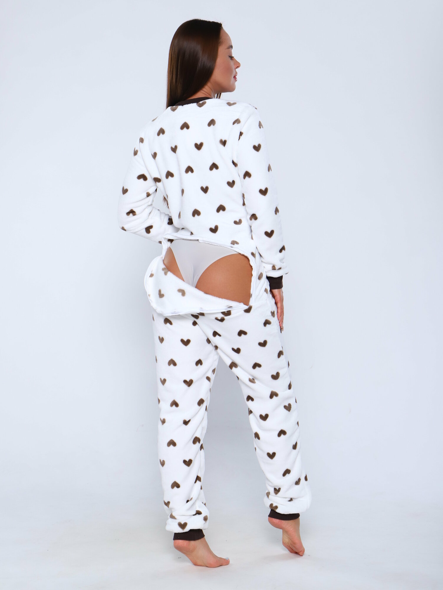 Пижама с карманом на попе Шоколадные сердечки XL