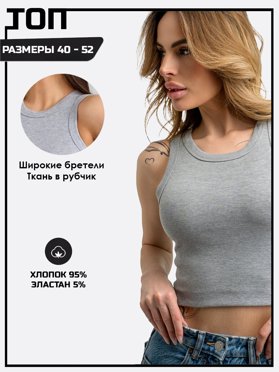Майка женская в рубчик серая хлопок летняя бесшовная
