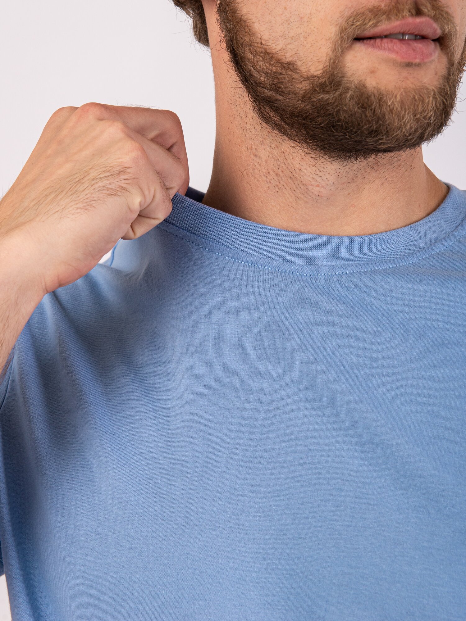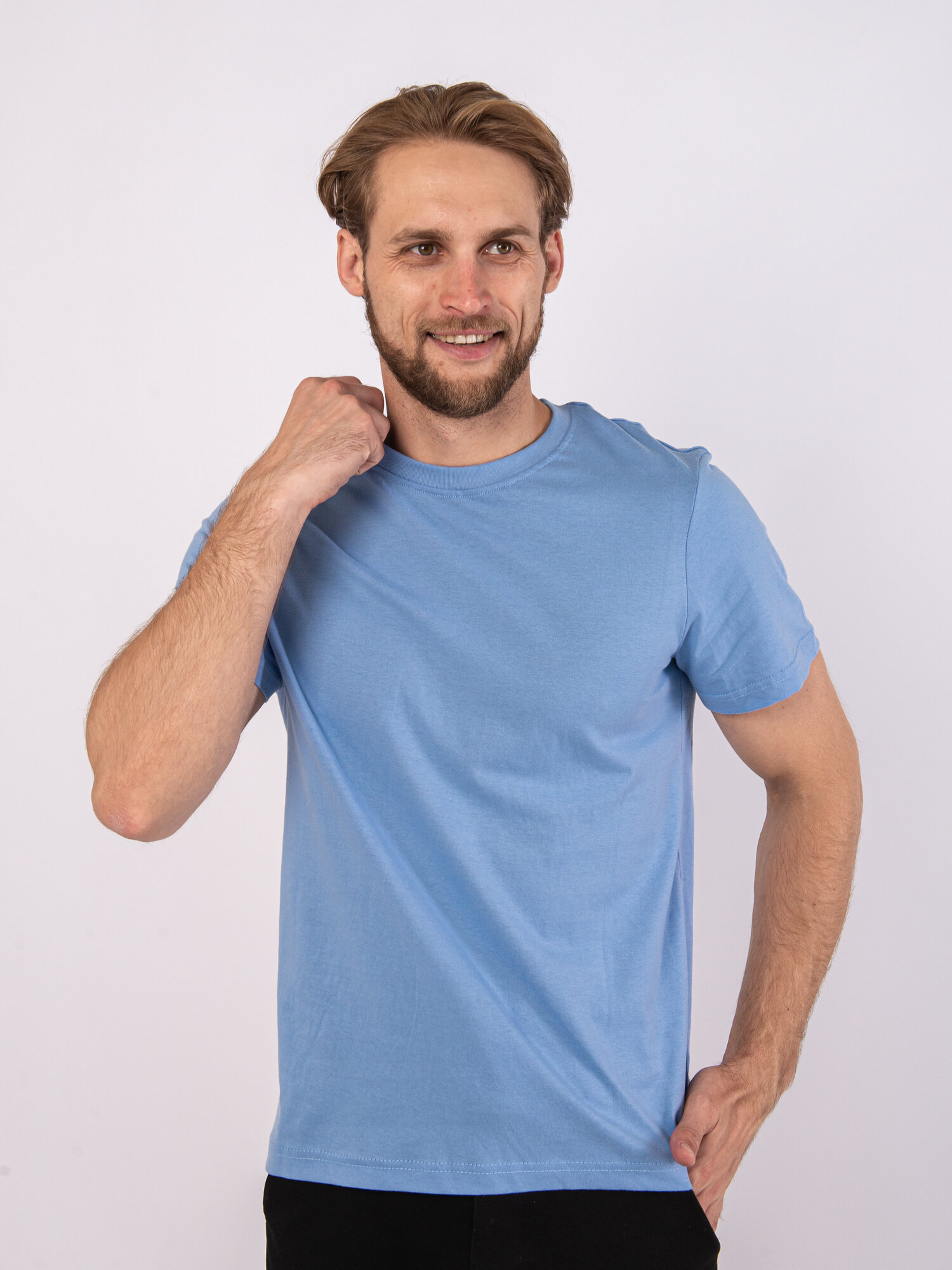 Футболка мужская однотонная голубая без принта, размер 50