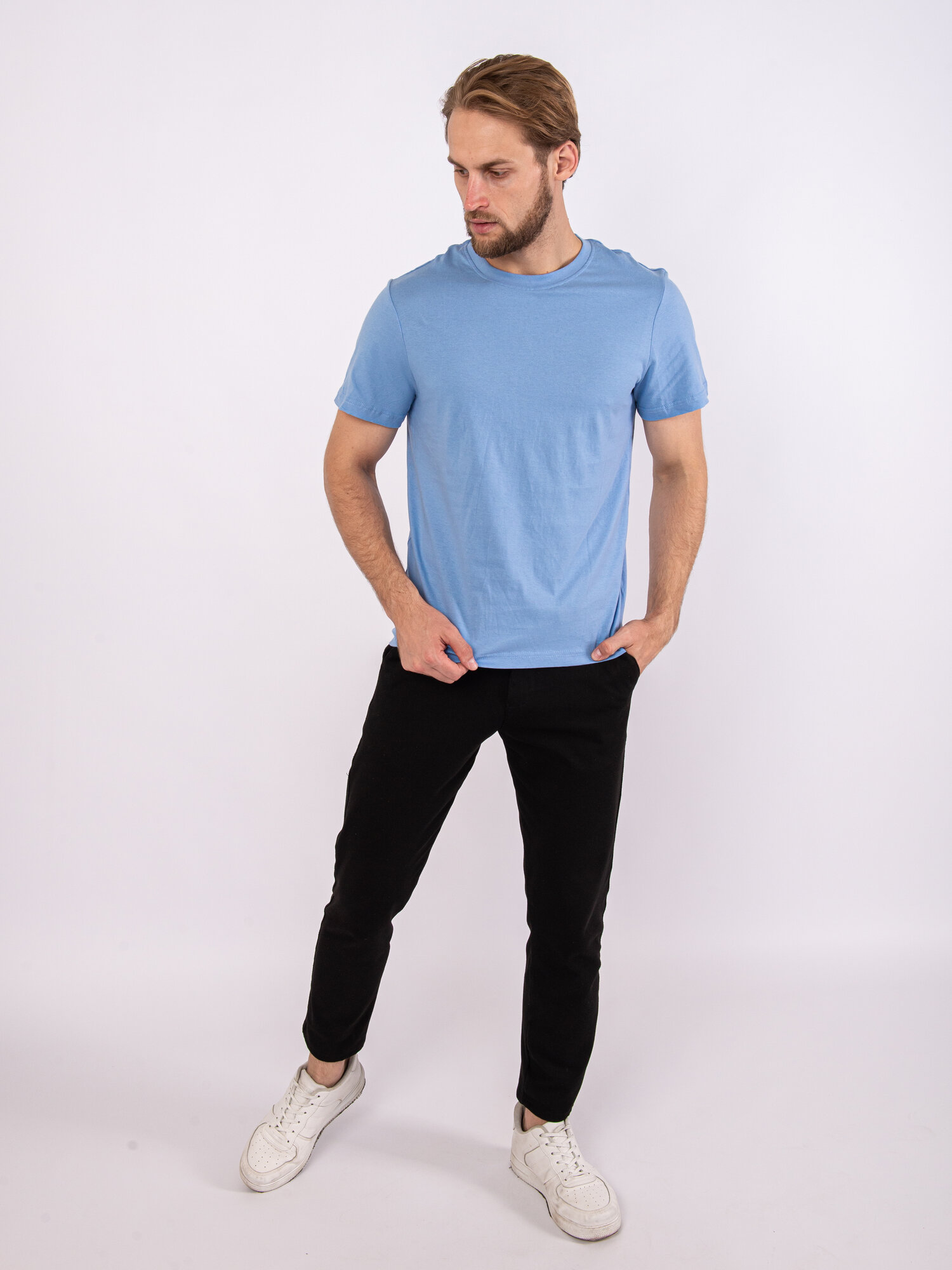 Футболка мужская однотонная светло-голубая без принта, размер 50