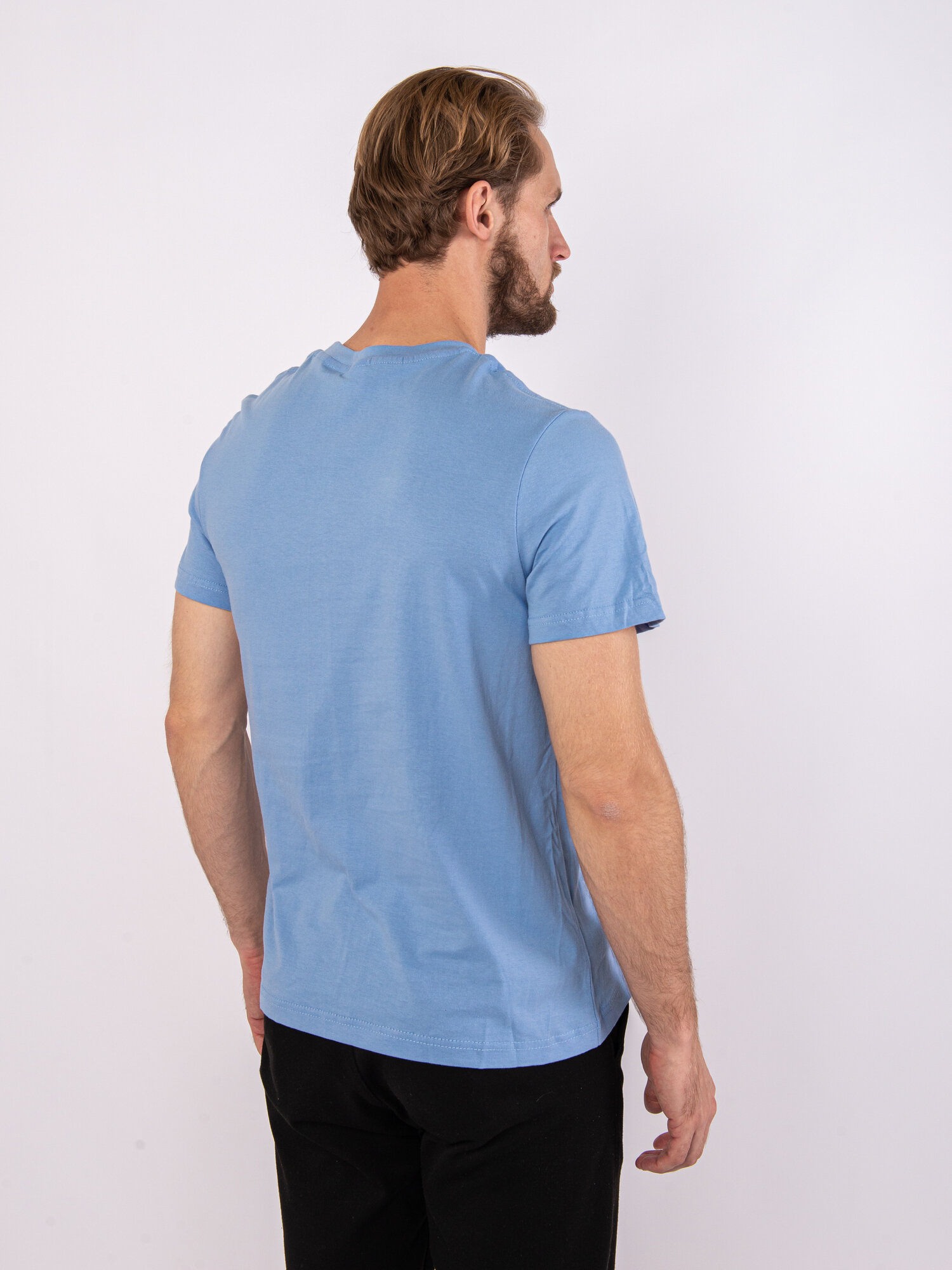 Футболка мужская однотонная голубая без принта, размер 48
