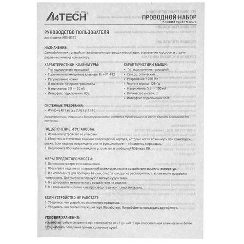 Комплект A4Tech KRS-8372 Black USB .