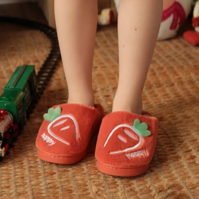 Тапочки детские домашние плюшевые размер 34-35 цвет красный