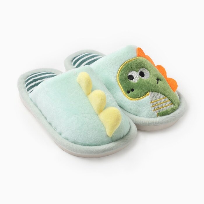 Тапочки детские домашние с динозавром теплые размер 28-29 цвет мятный