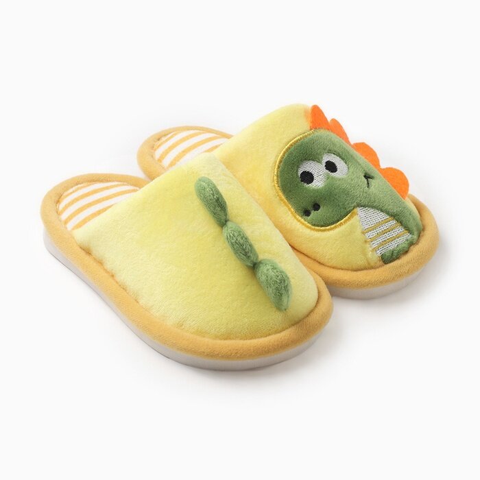 Тапочки детские домашние теплые с динозавром размер 28-29 цвет желтый