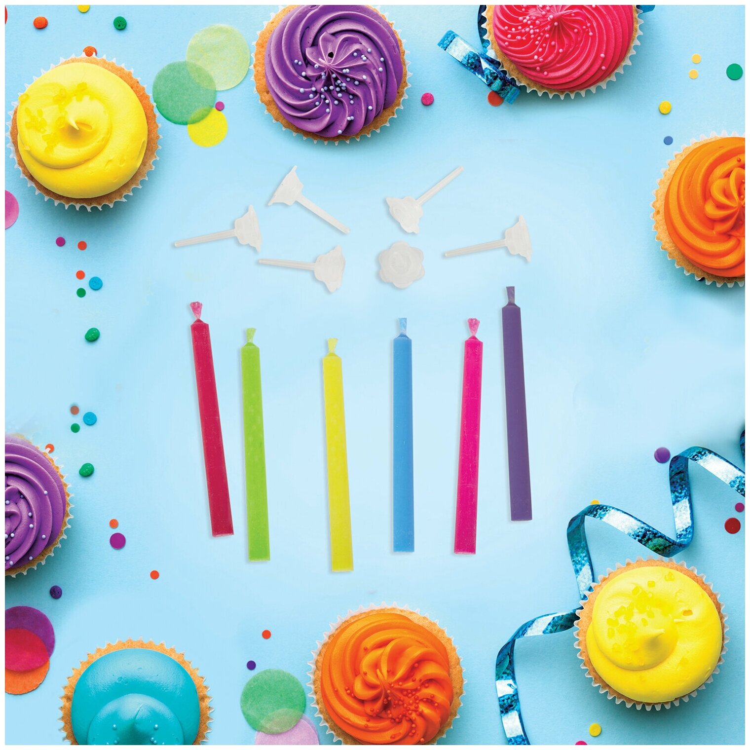 Купить Набор свечей для торта с цветным пламенем 6 шт, 6 см, сдержателями, золотая сказка, 591459