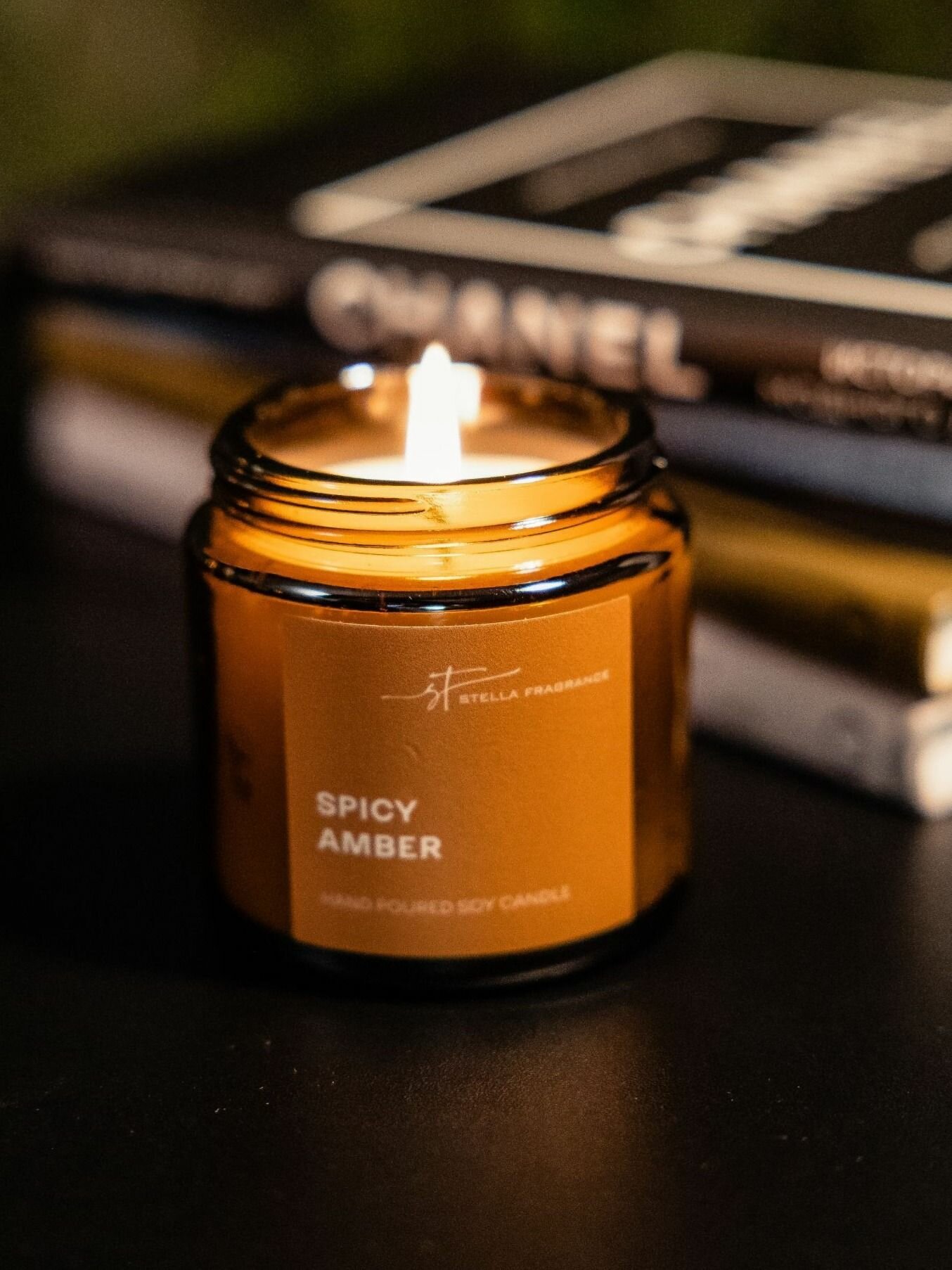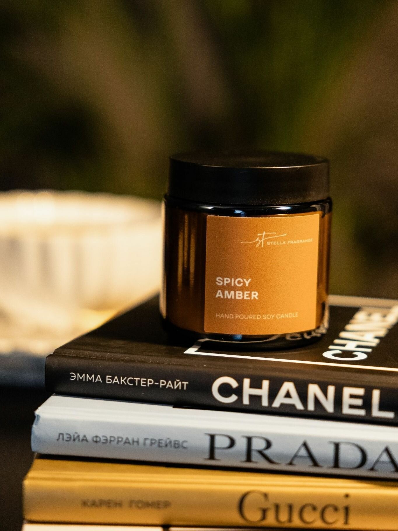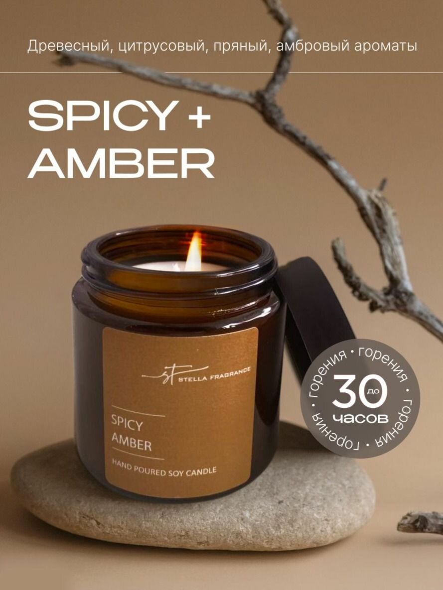 Свеча ароматическая декоративная с фитилем Stella Fragrance с ароматом SPICY AMBER, Пряный янтарь, 90 гр. интересное: