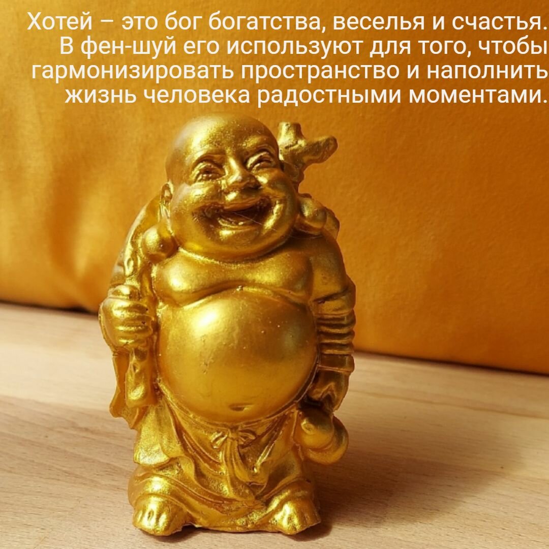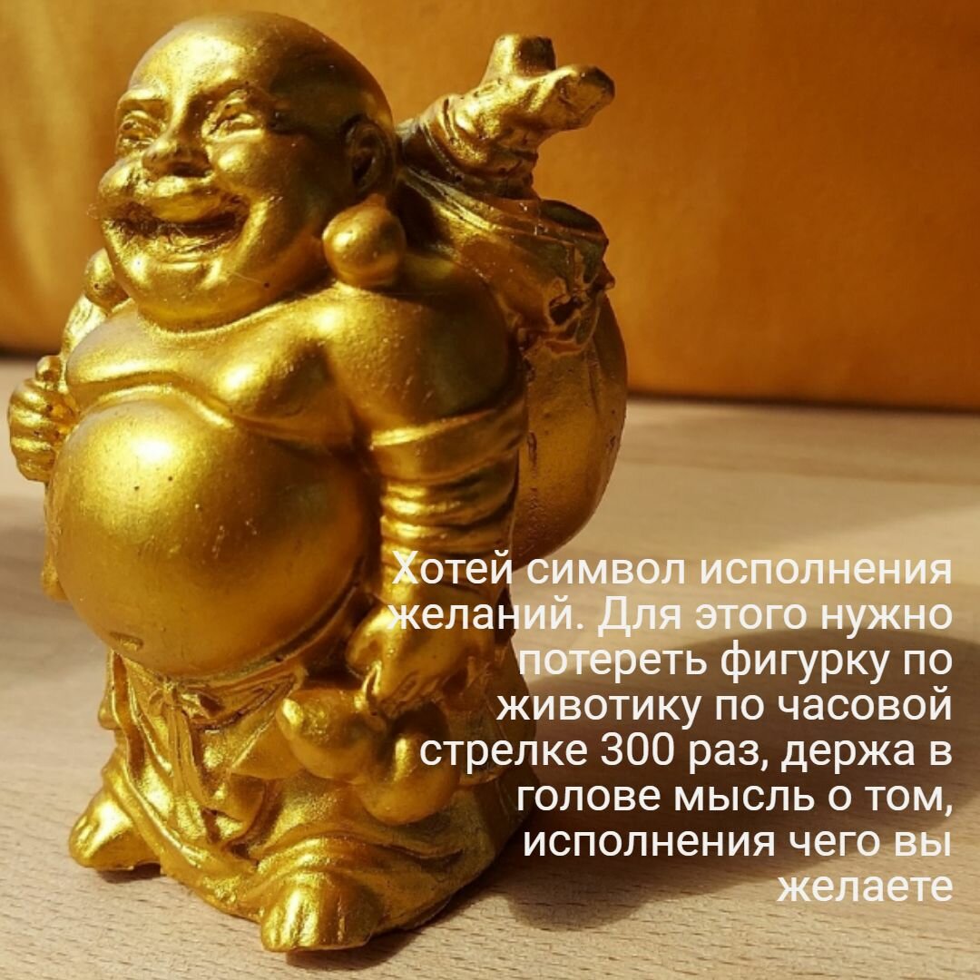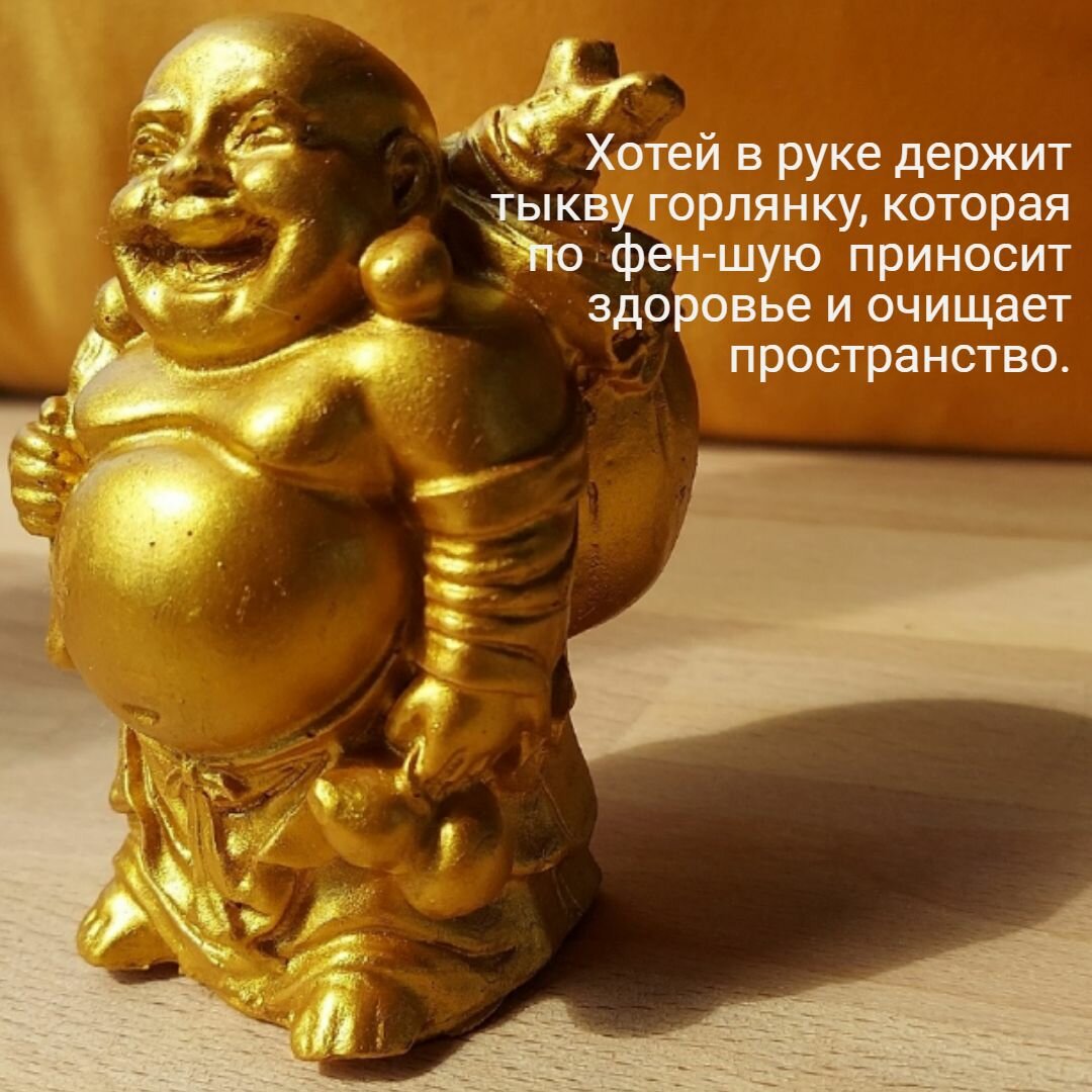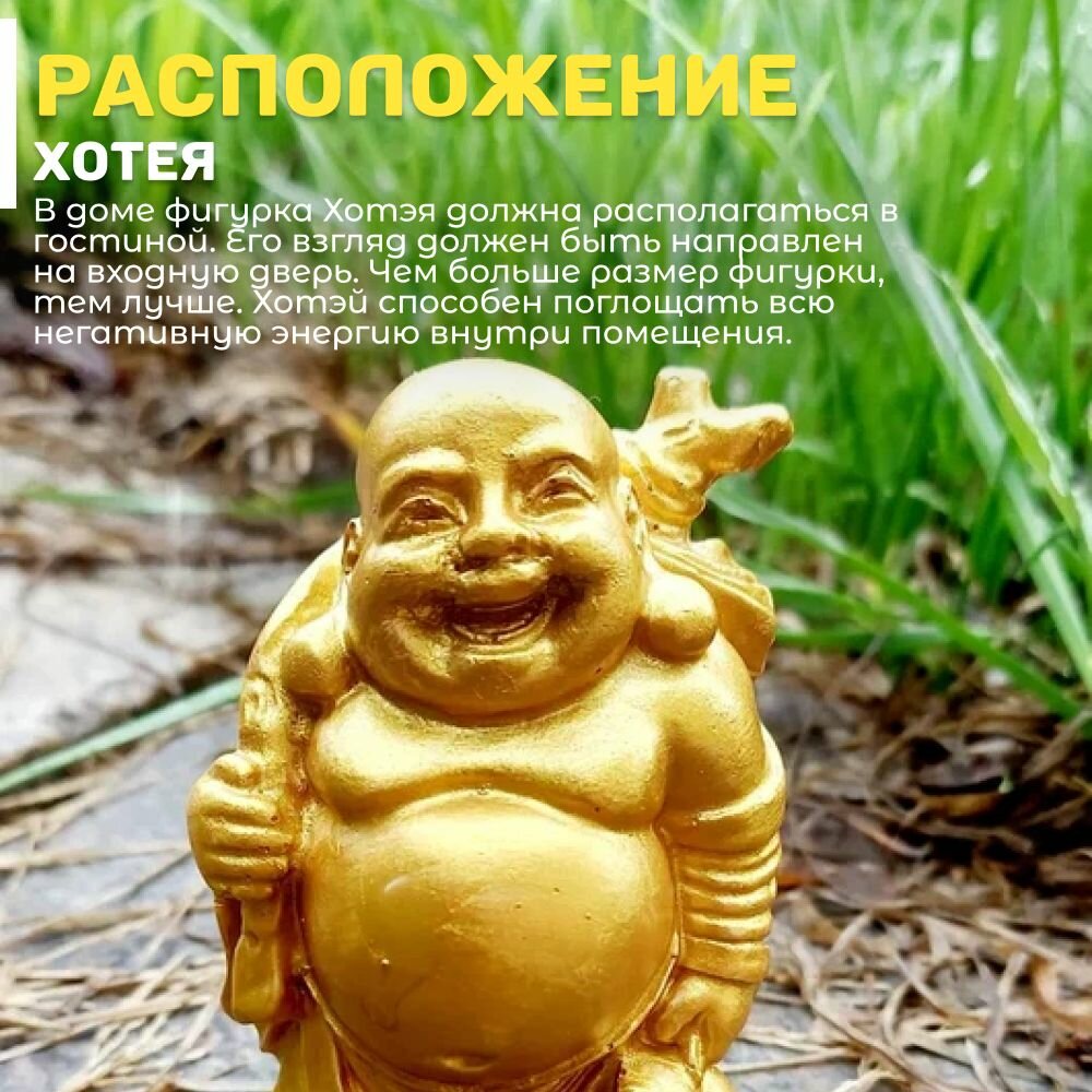Хотей с мешком богатства, золотой , статуэтка Фен Шуй, 11 см интересное: