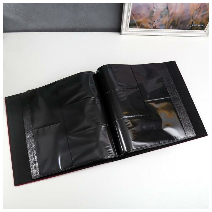 Фотоальбом BRAUBERG на 200 фото 10*15 см, под гладкую кожу, красный, бокс, бумажные страницы, 391193