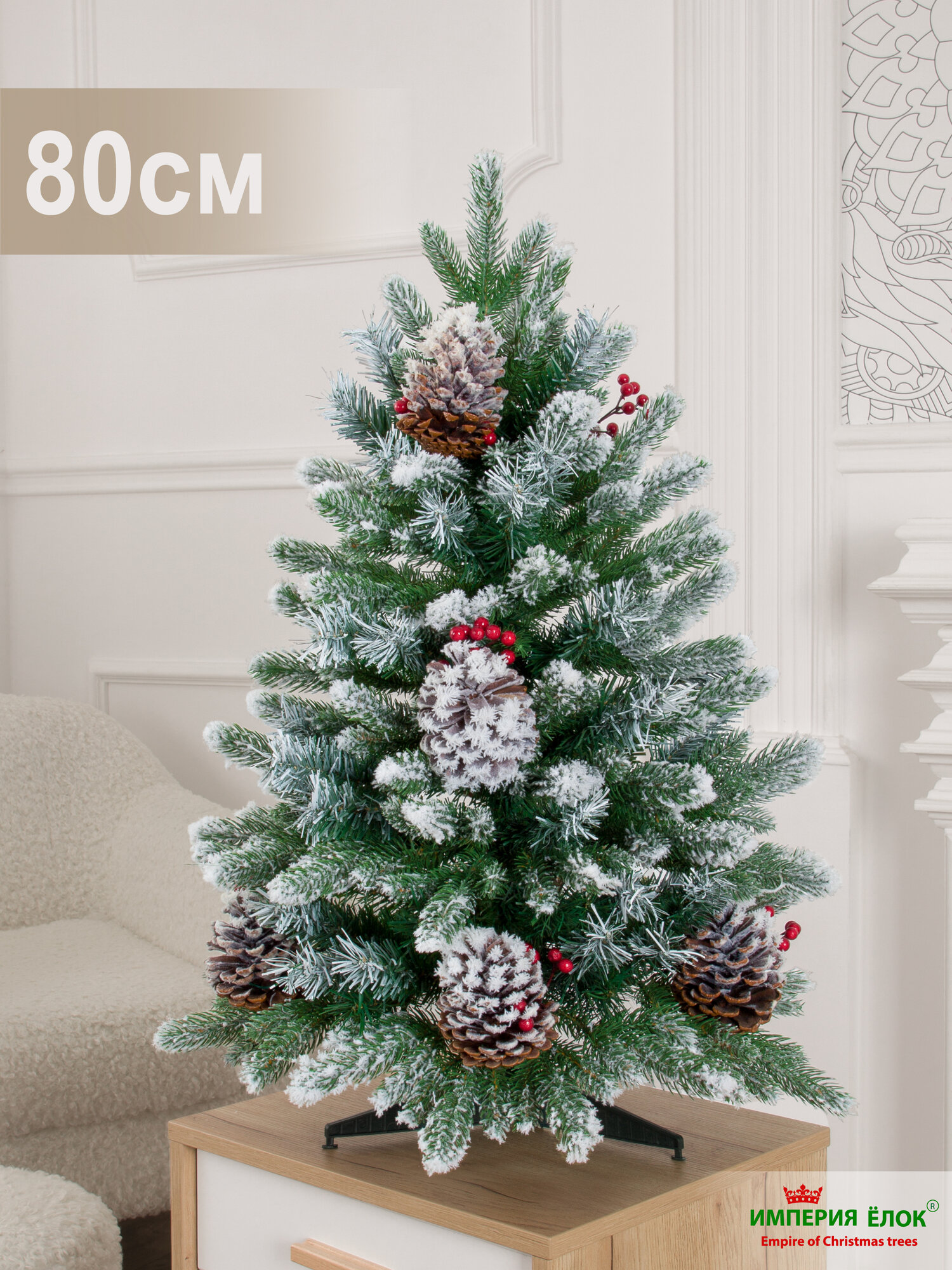 Купить Елка искусственная литая+ПВХ заснеженная с шишками 80 см, ель на Рождество в комнату, Империя Ёлок