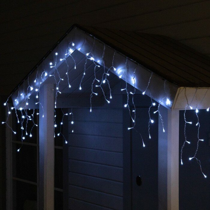 Гирлянда «Бахрома» 3 х 0.6 м, IP44, прозрачная нить, 114 LED, свечение белое, 8 режимов, солнечная батарея (арт. 9348531)