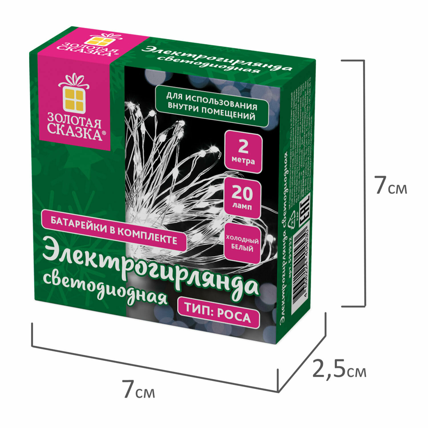 Купить Электрогирлянда-нить комнатная "Роса" 2 м, 20 LED, холодный белый свет, на батарейках, золотая сказка, 591932