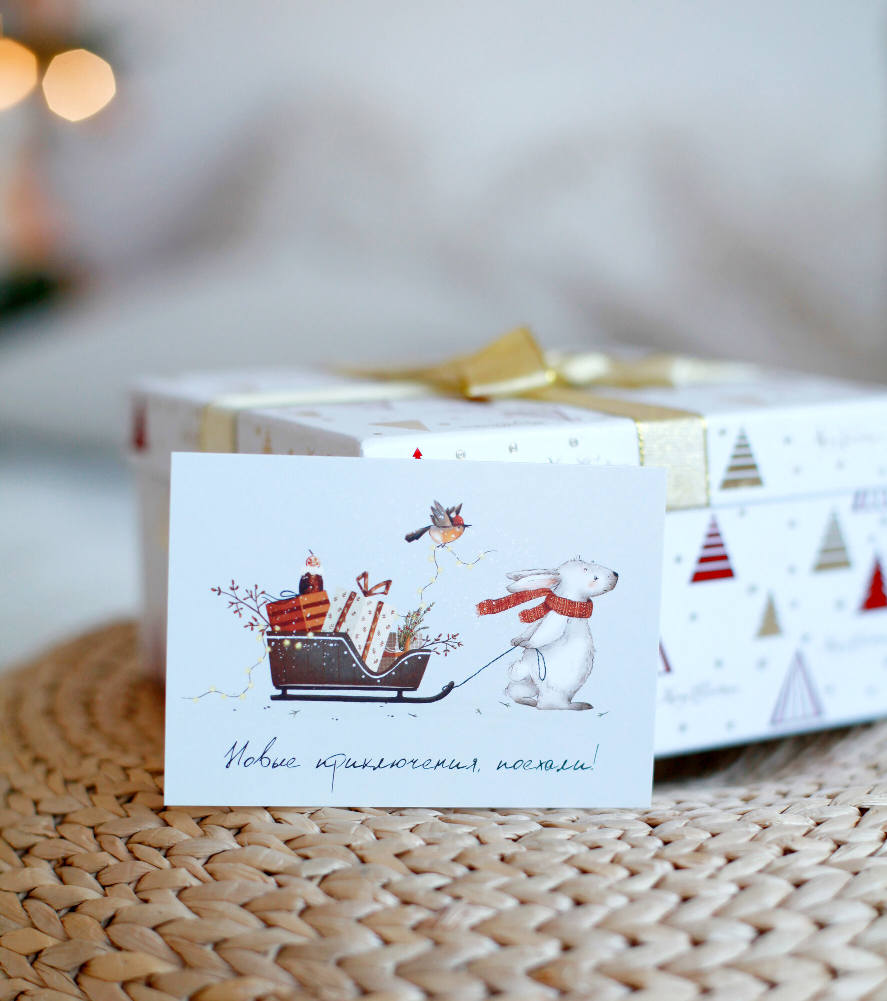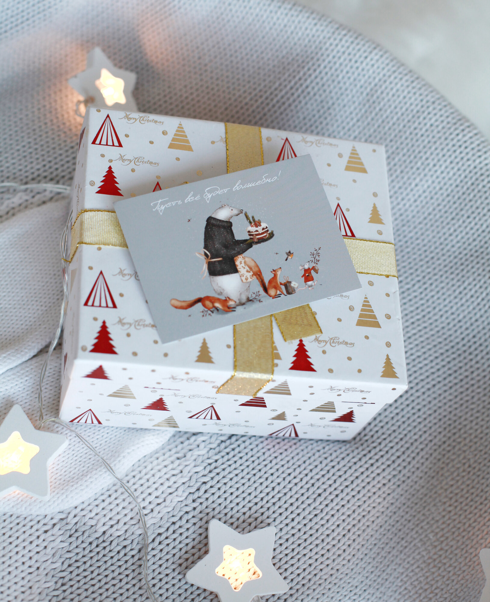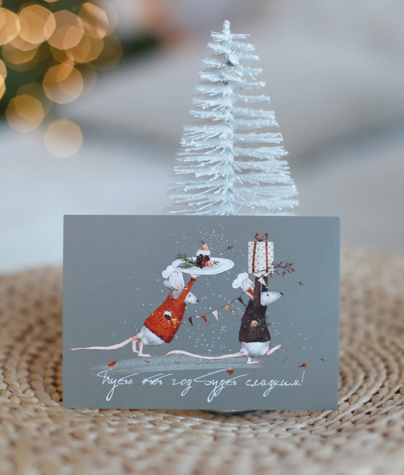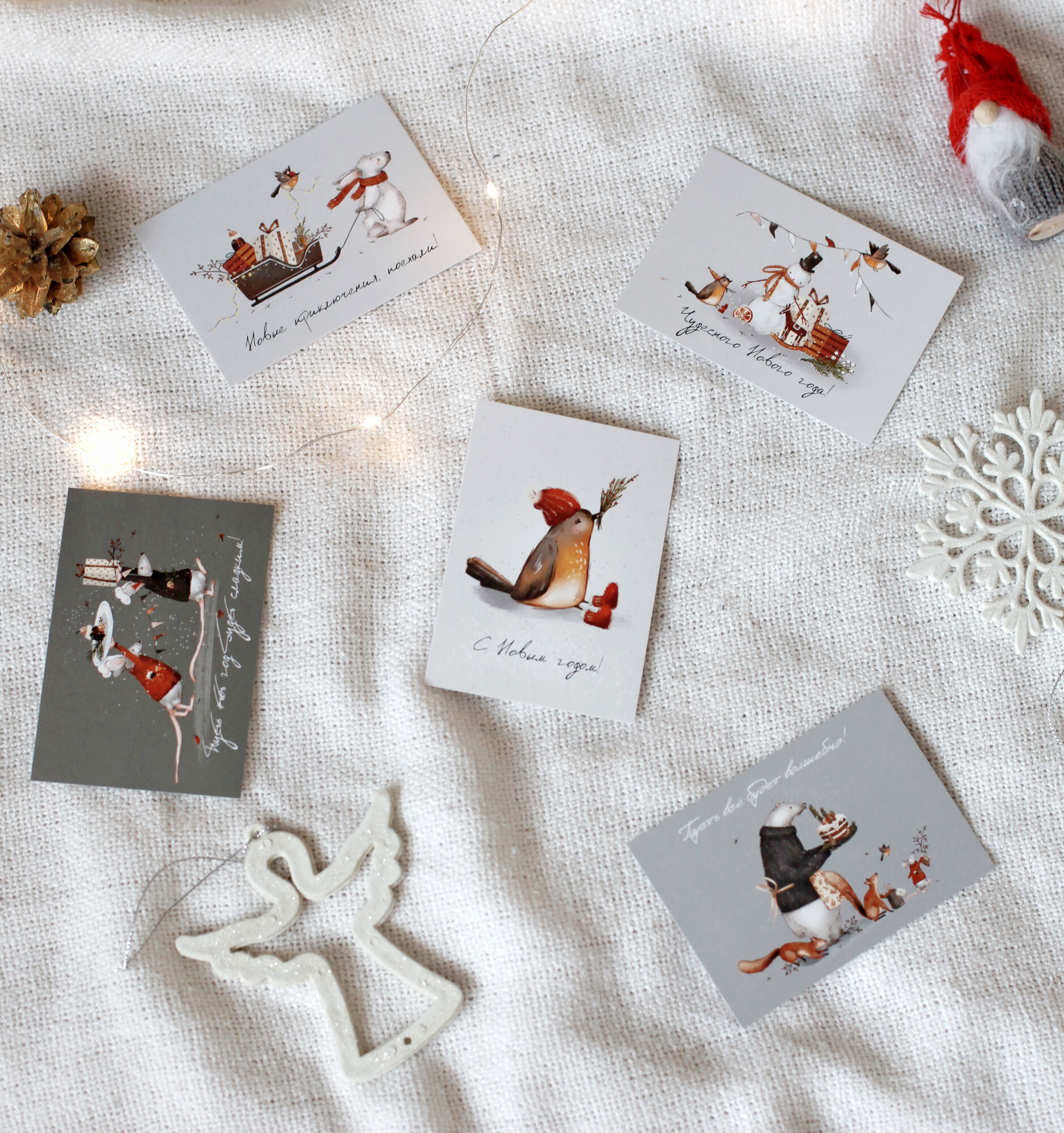 Набор Новогодних мини открыток с очаровательными зверюшками.