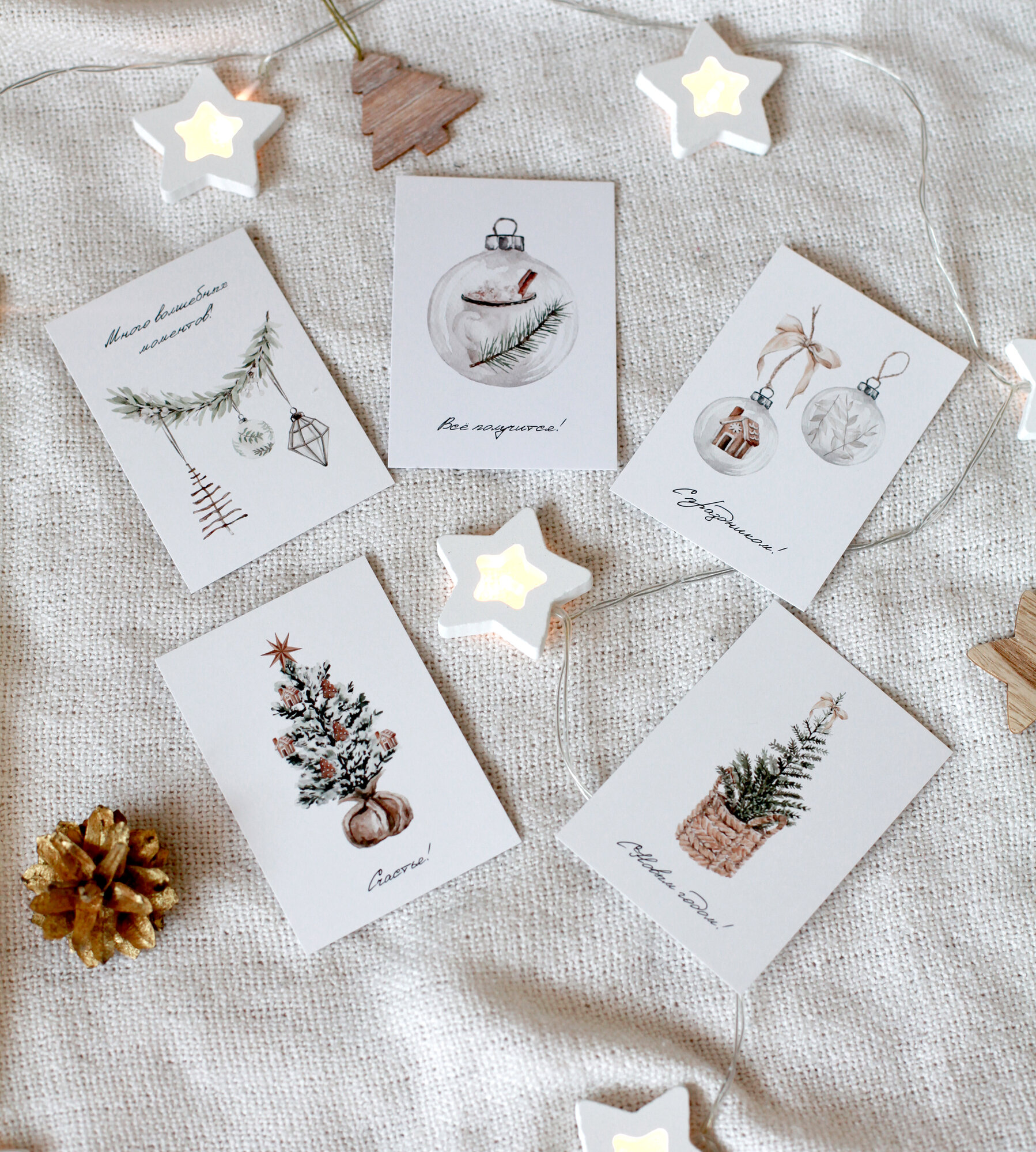 Новогодние открытки, набор 10 шт., для поздравлений, без повторов, 7,5*10,5 см