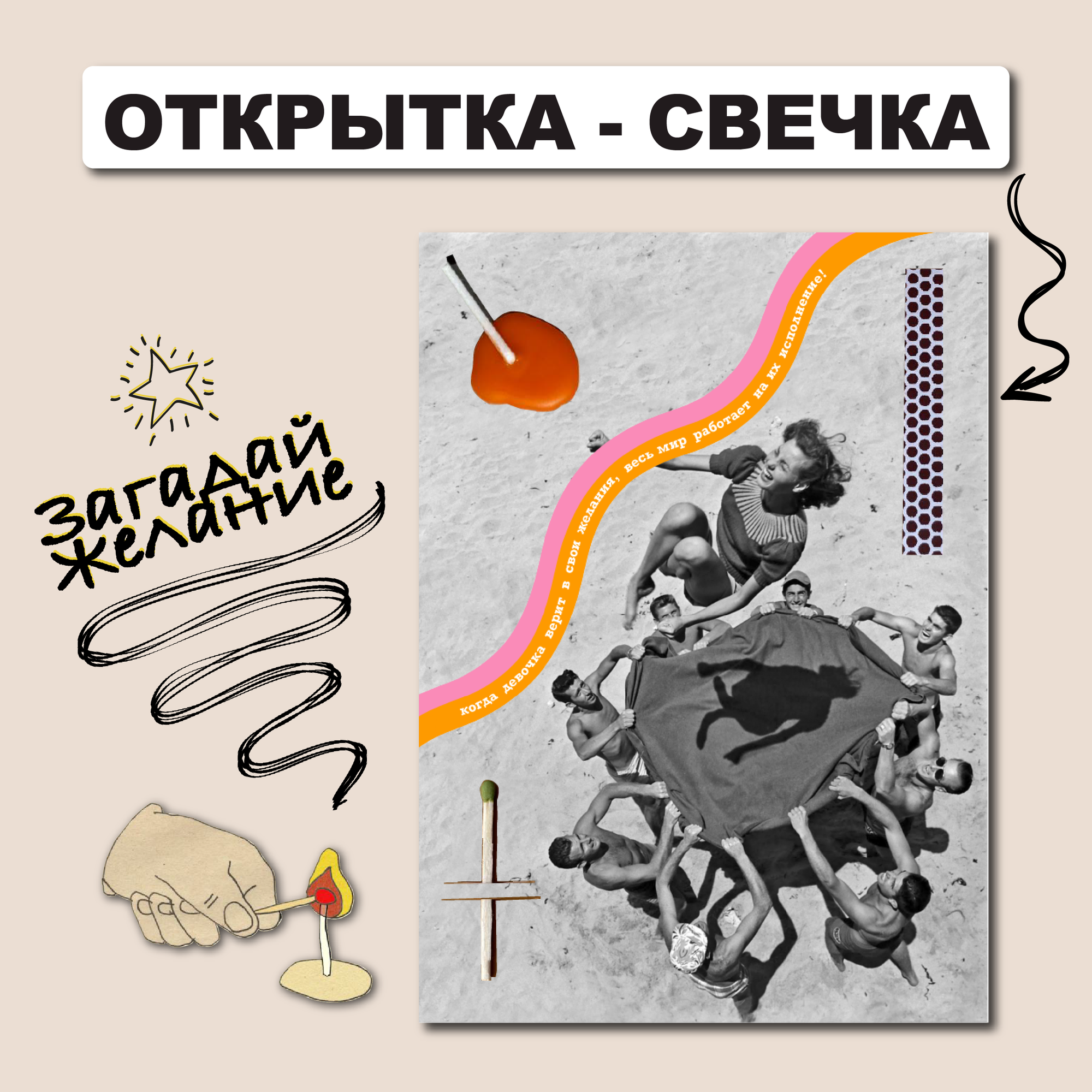 Открытка свечка "Загадай", от Вьюнчик, 14,8х10,5 см (А6), стильная поздравительная открытка на день рождения