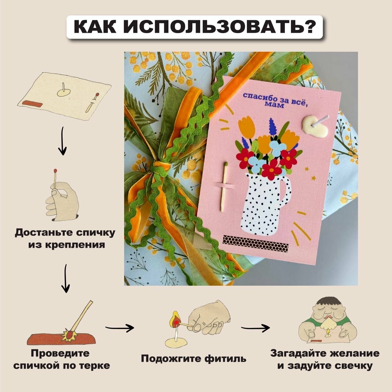 Открытка свечка "Спасибо, мам", от Вьюнчик, 14,8х10,5 см (А6), стильная поздравительная открытка маме